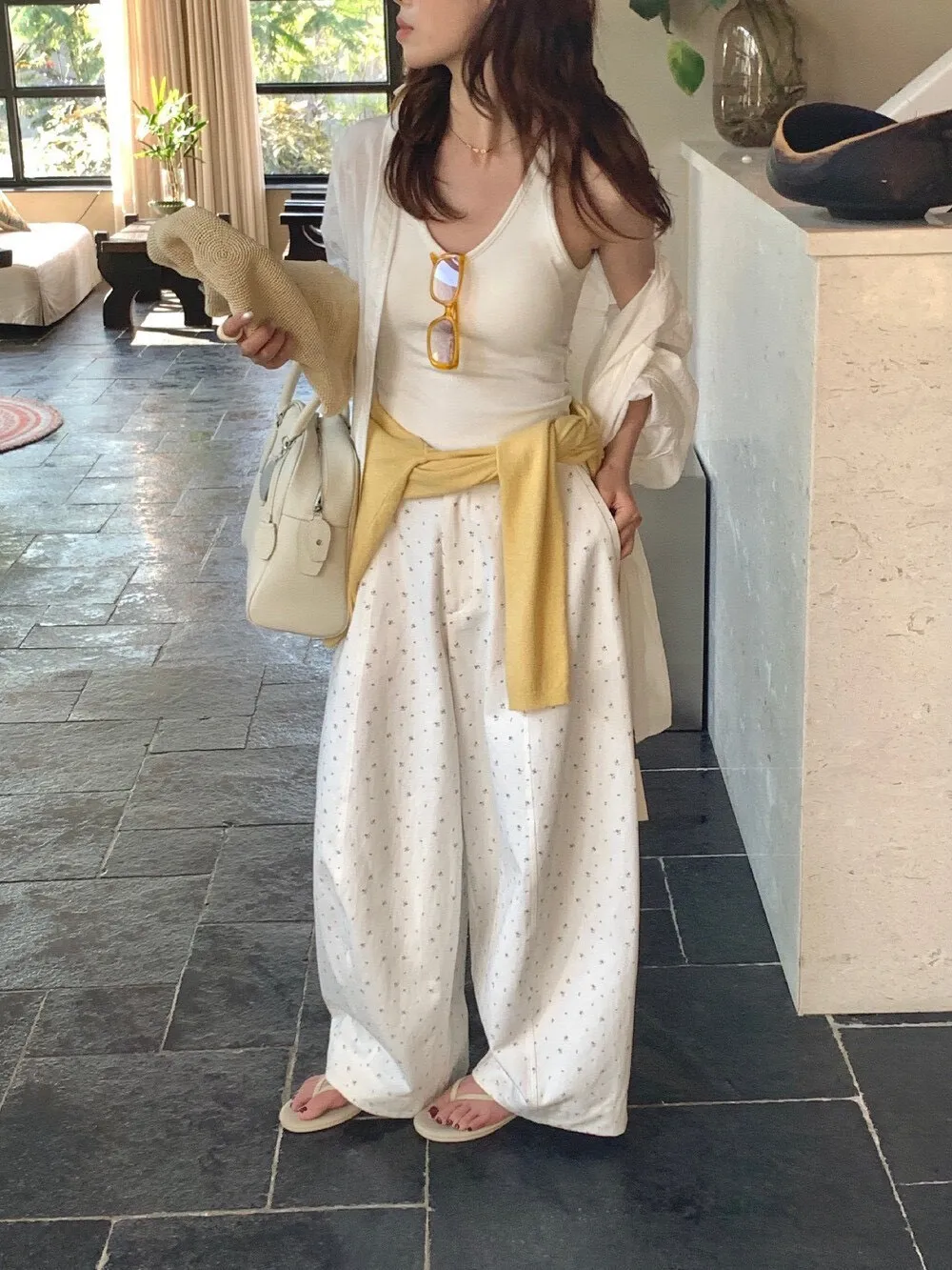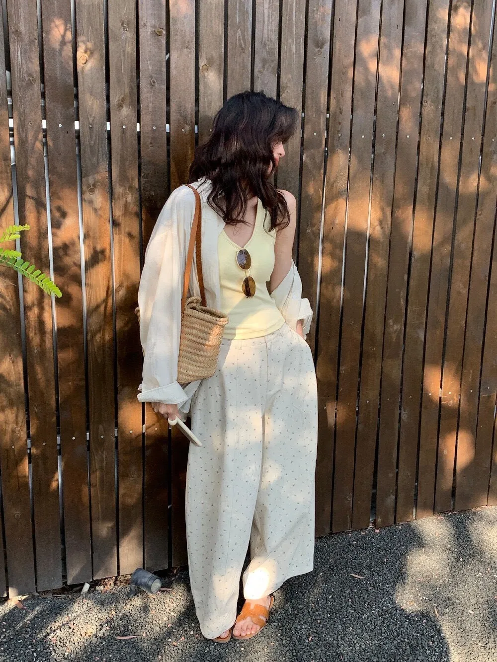 休閒又時髦 ✔️ 碎花細節加分不浮誇 獨特的彎刀剪裁設計,不僅修飾腿型還能輕鬆拉長比例,讓你視覺顯瘦好幾圈🖤細節處點綴的碎花印花,小小的低調又有質感讓整條褲子不單調,增添了一抹柔美感🌸 休閒棉布料舒適又有彈性,活動自如不緊繃無論是居家、逛街還是出門小約會,都能輕鬆駕馭✨ PENNY闆闆自留🤍 白💜 灰紫🤍 白:乾淨明亮,百搭必備🤎 卡其:自然溫暖,超好配💜 灰紫:甜美氣質,低調中帶點小俏皮🖤 碳灰:沉穩有型,顯瘦首選 尺寸:公分 S 腰32 臀70 長98 M 腰34 臀72 長99 L腰36臀74長100