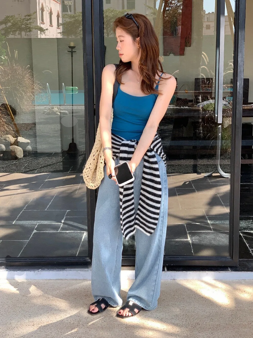 搭牛仔褲就很好看了,外面再加襯衫或外套也很可以