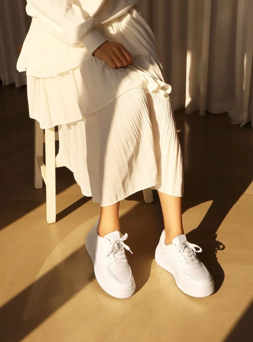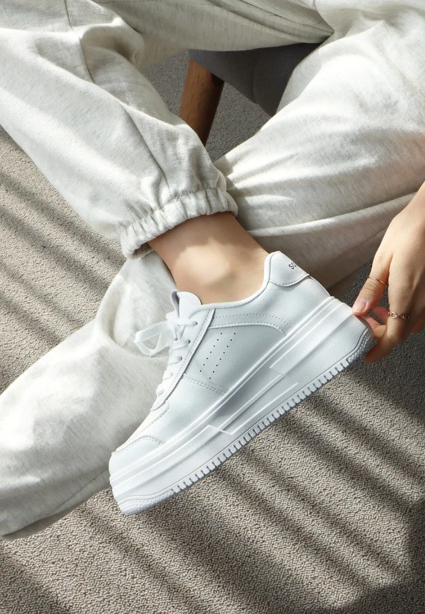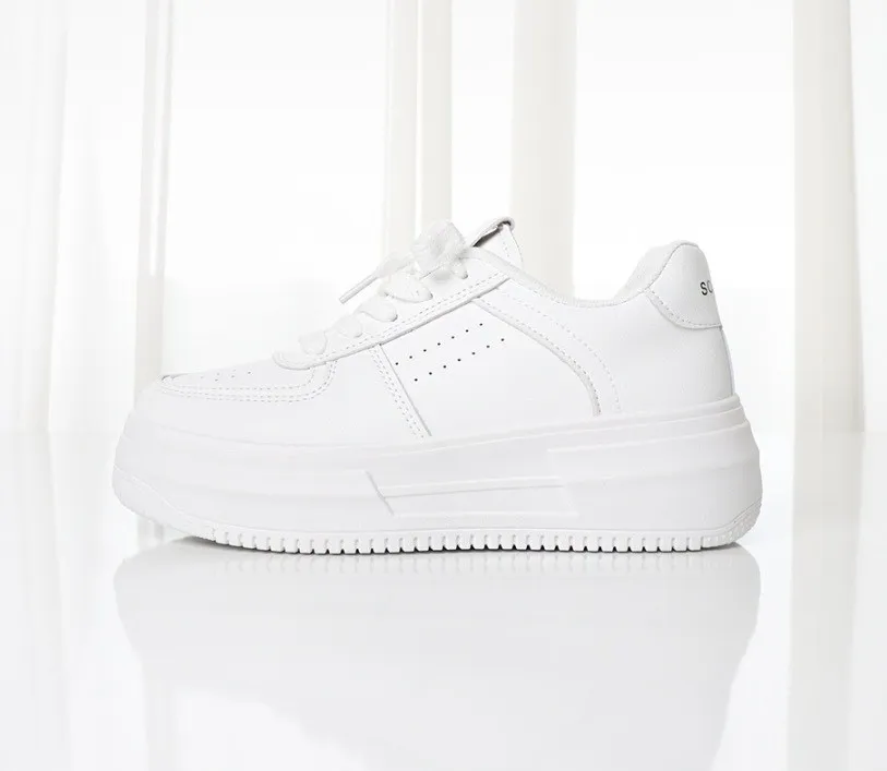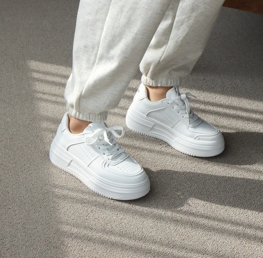 熱賣千雙沒有理由就是好穿又好搭便宜又好穿 是很多人會想回購的神協 整體以全白為基底,看起來乾淨清爽 但透過厚底與立體結構,把簡單做出層次 鞋身線條圓潤,搭配側邊俐落切面 帶點微運動感又不會太休閒 剛好卡在日常與時髦之間 5公分厚底是這雙的亮點之一 穿上去自然拉高比例,腿部線條更修長 它最大的優點是「怎麼搭都不會出錯」!!!特別生產加大尺寸到25.5公分✔️版型正常