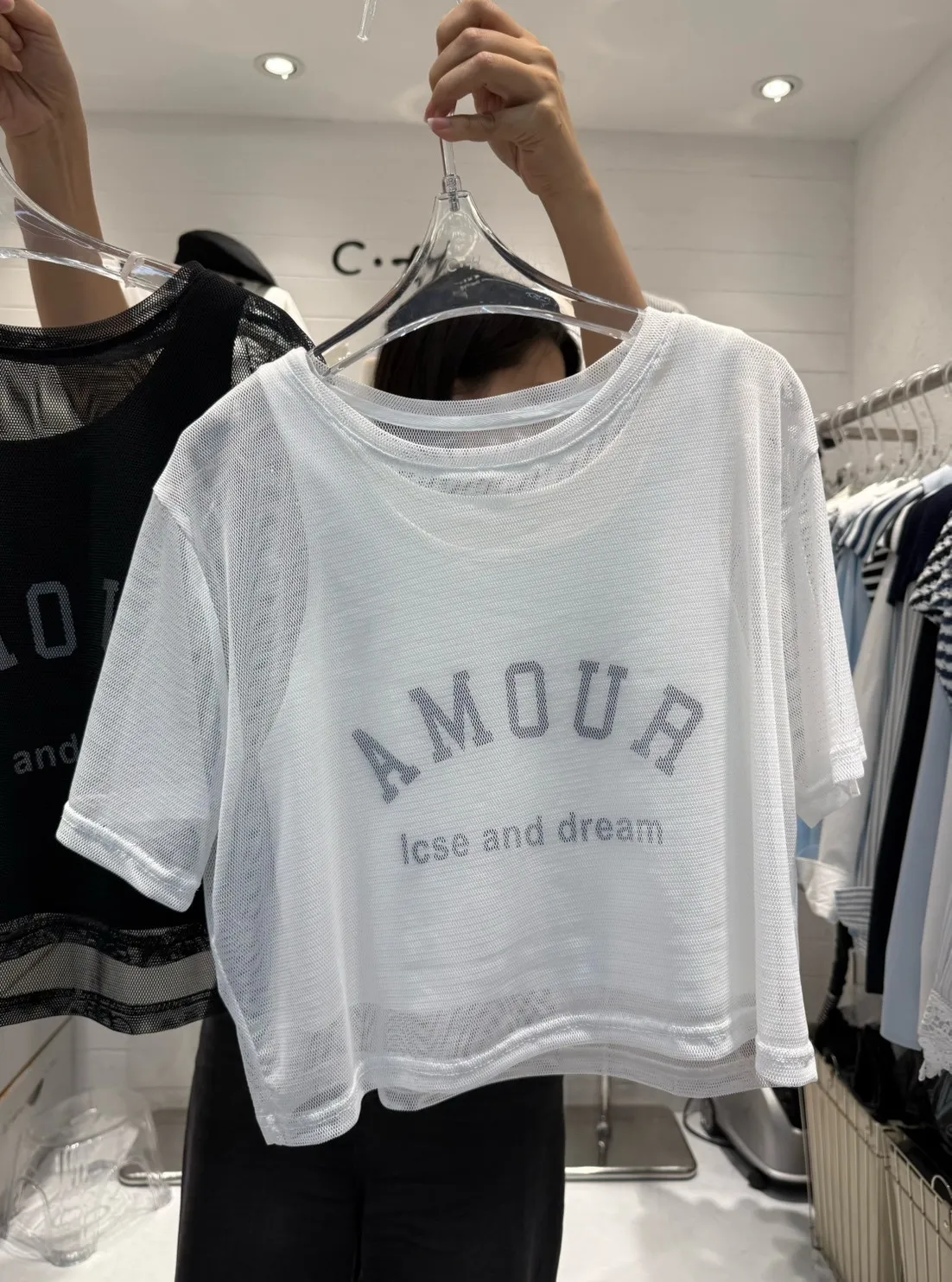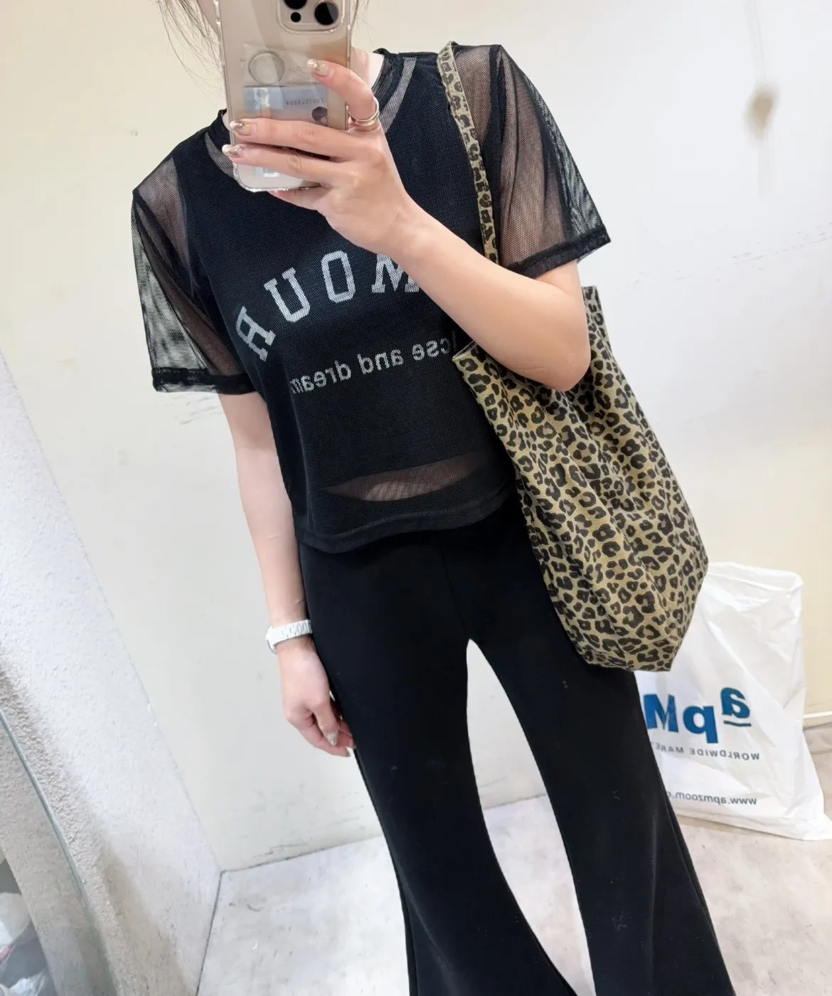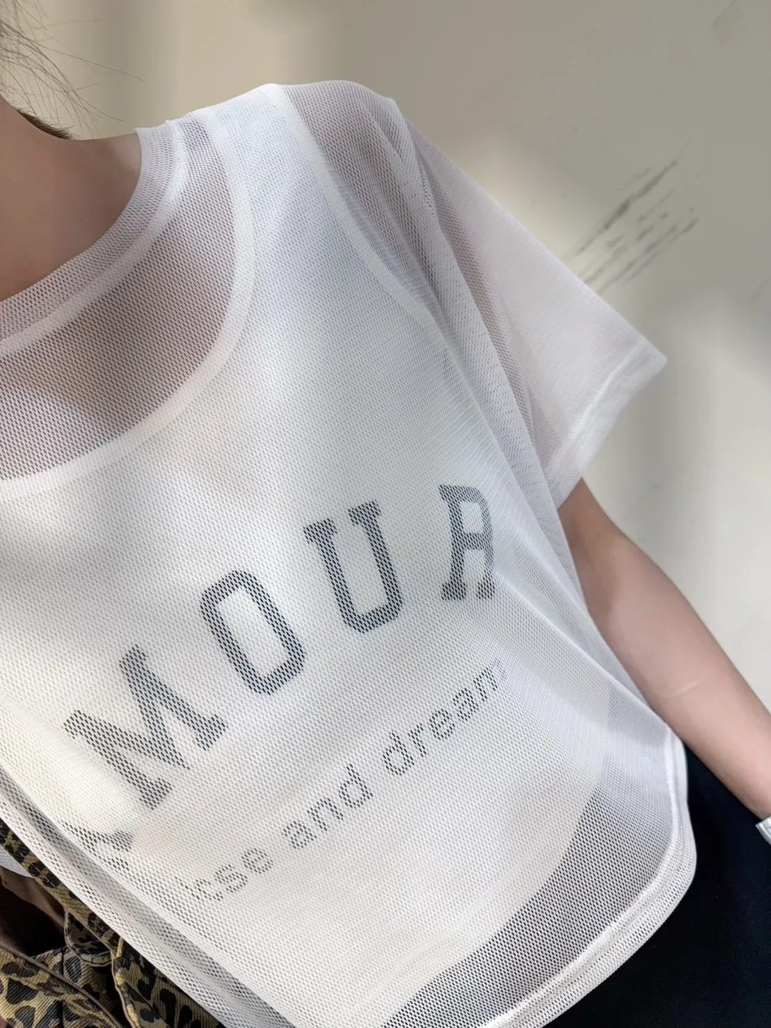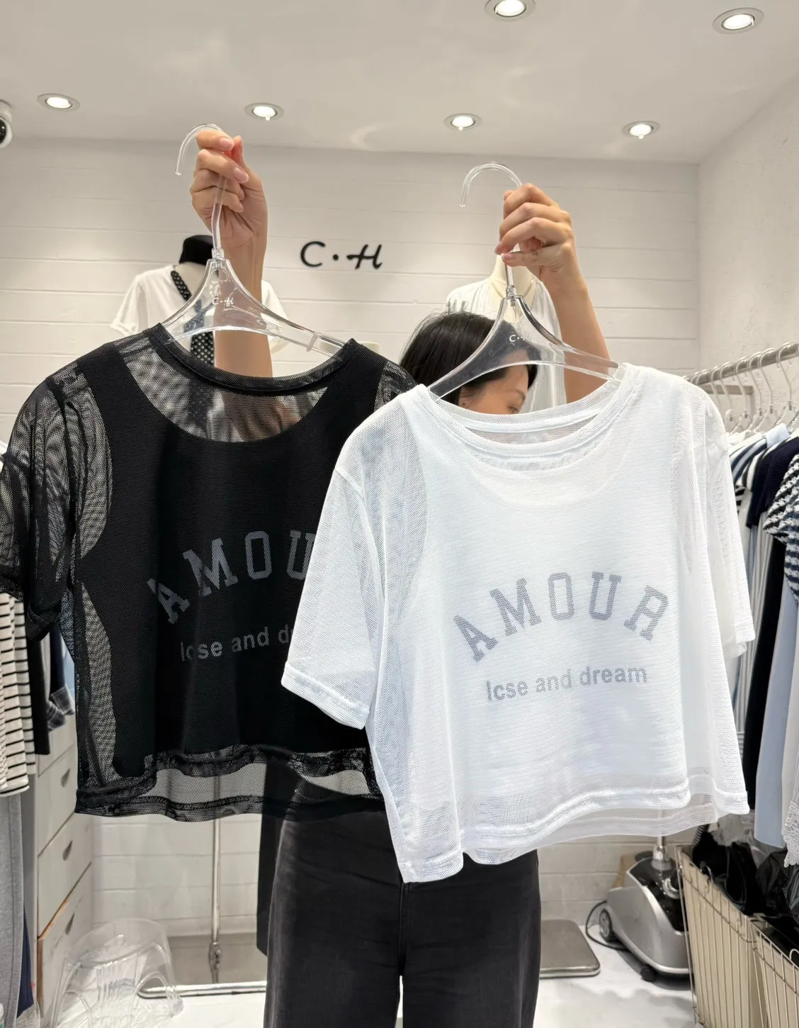 外層是輕薄的透膚網狀短版上衣,微微透感讓整體多了一點小性感