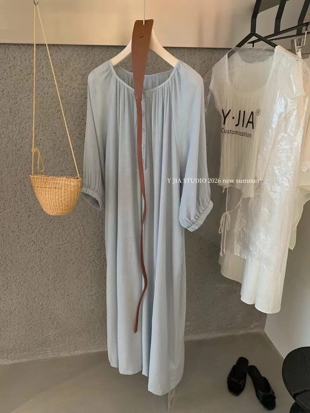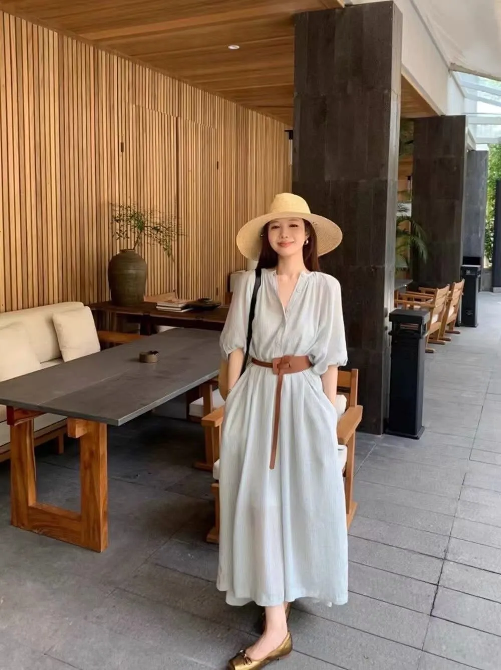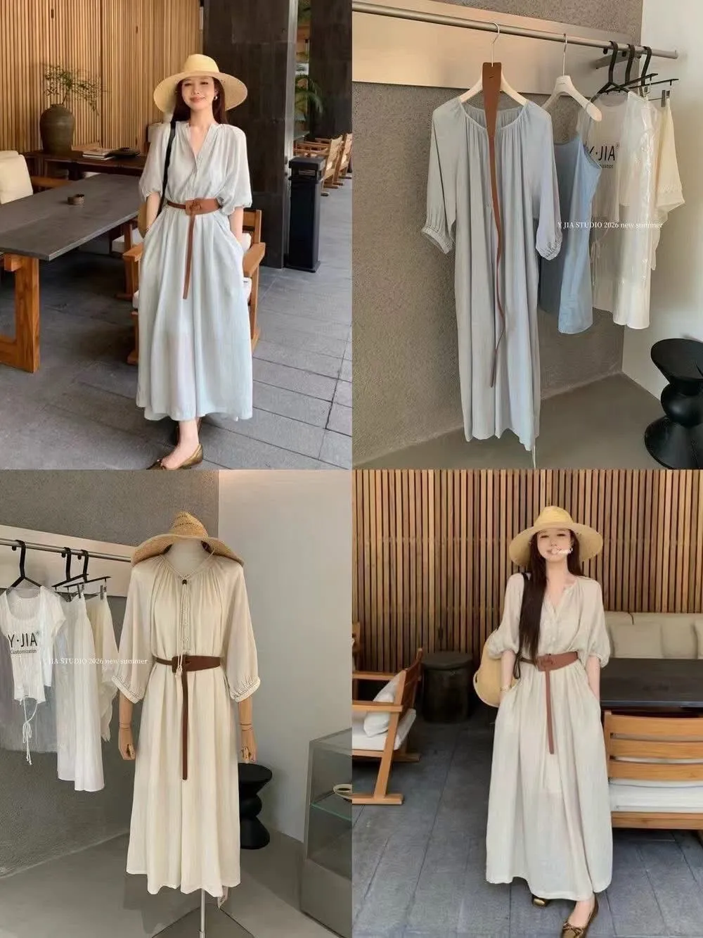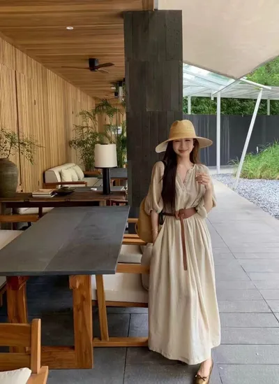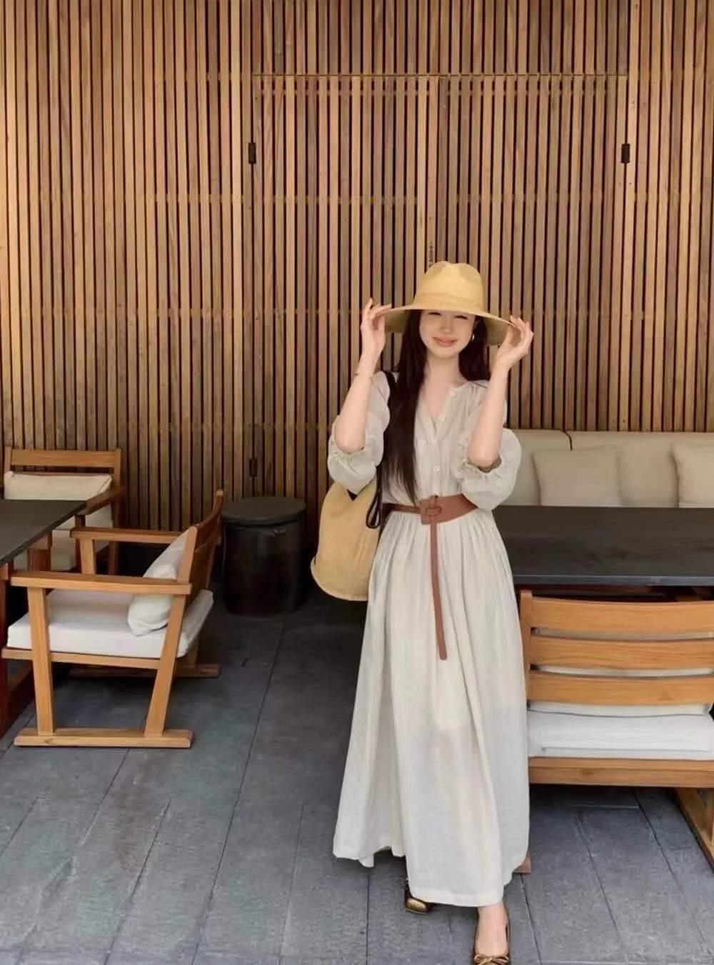 這件洋裝最迷人的,就是那種獨特的雪紡棉麻「柔霧感」面料