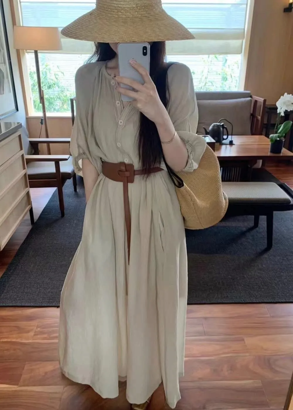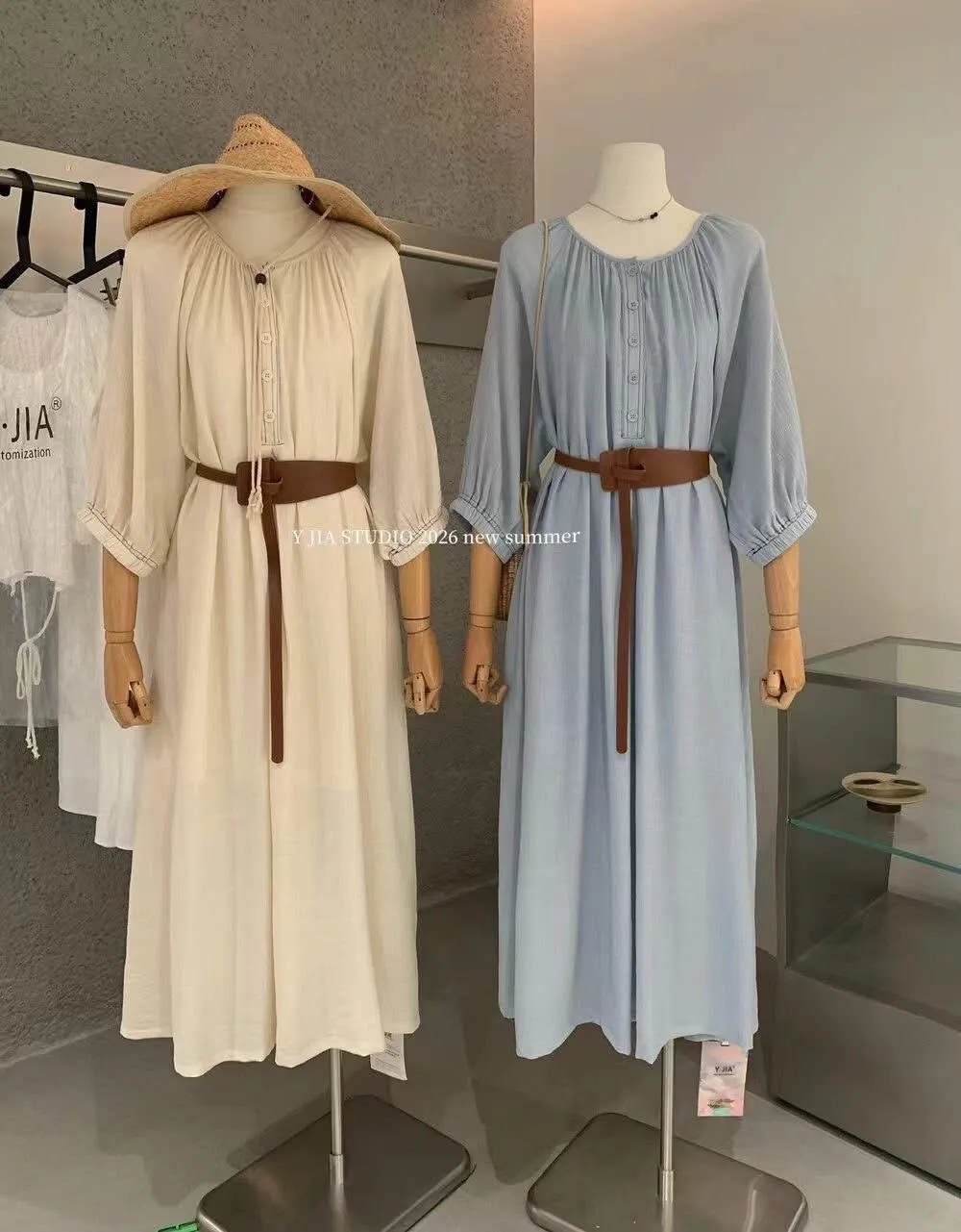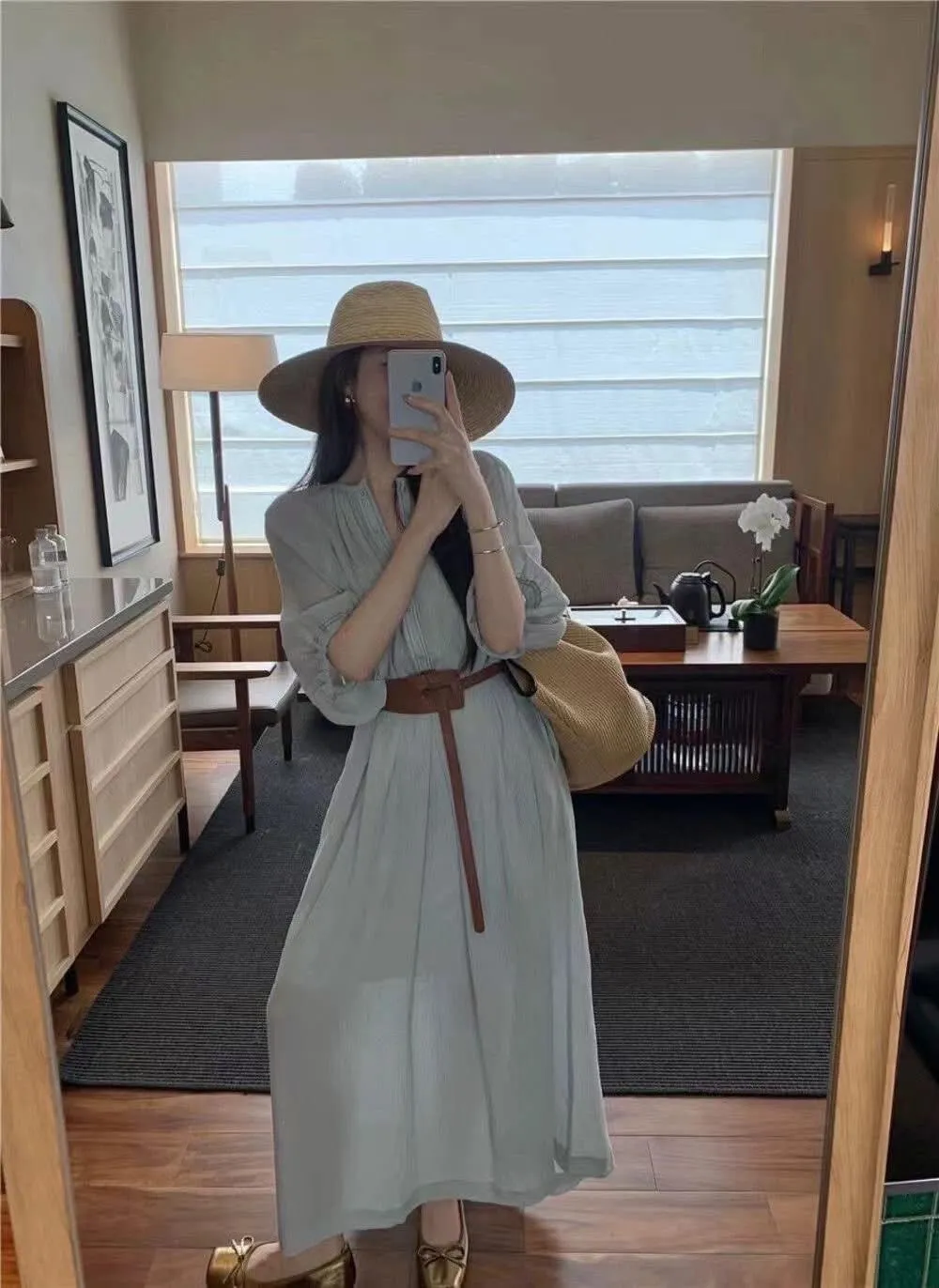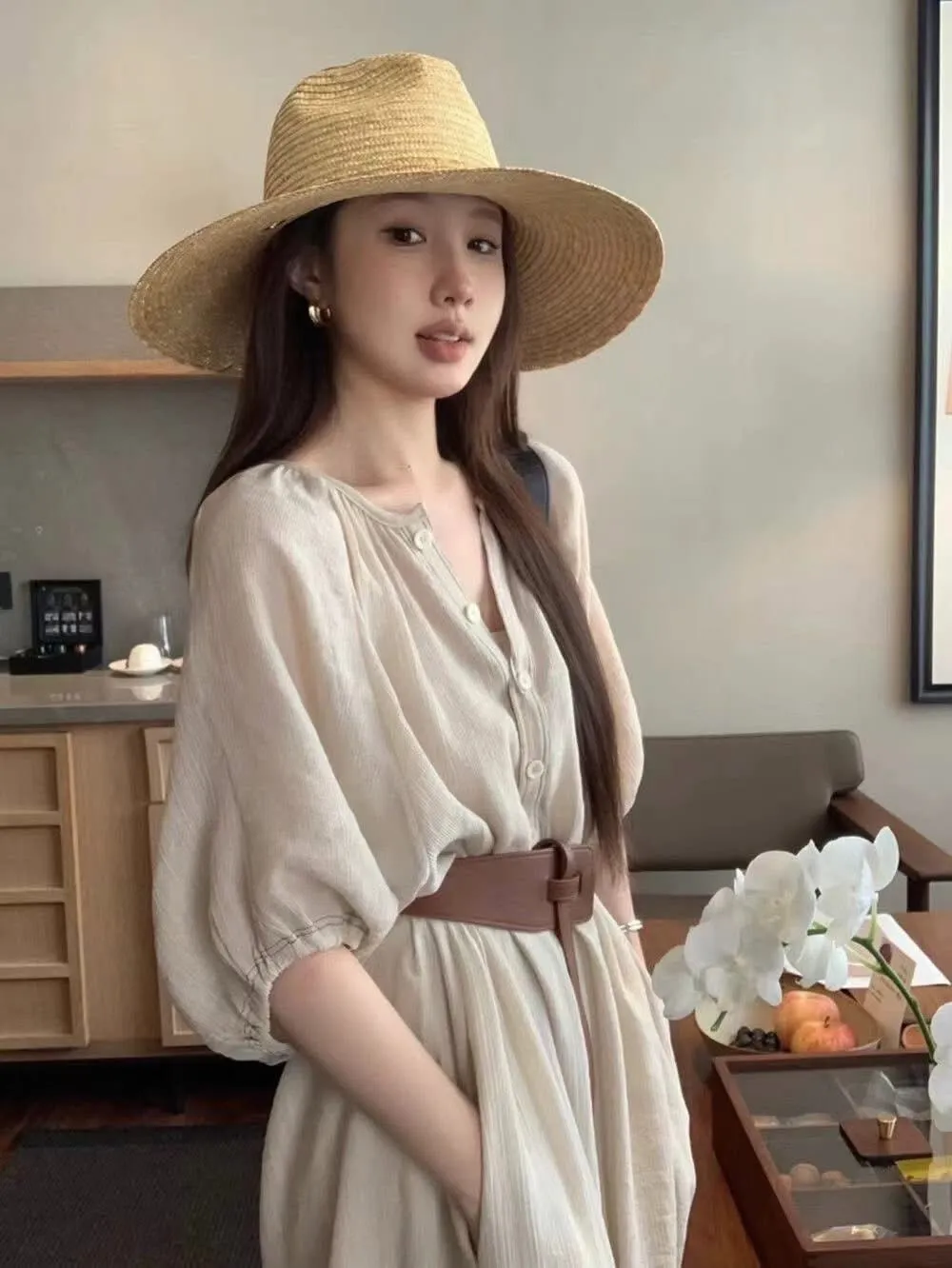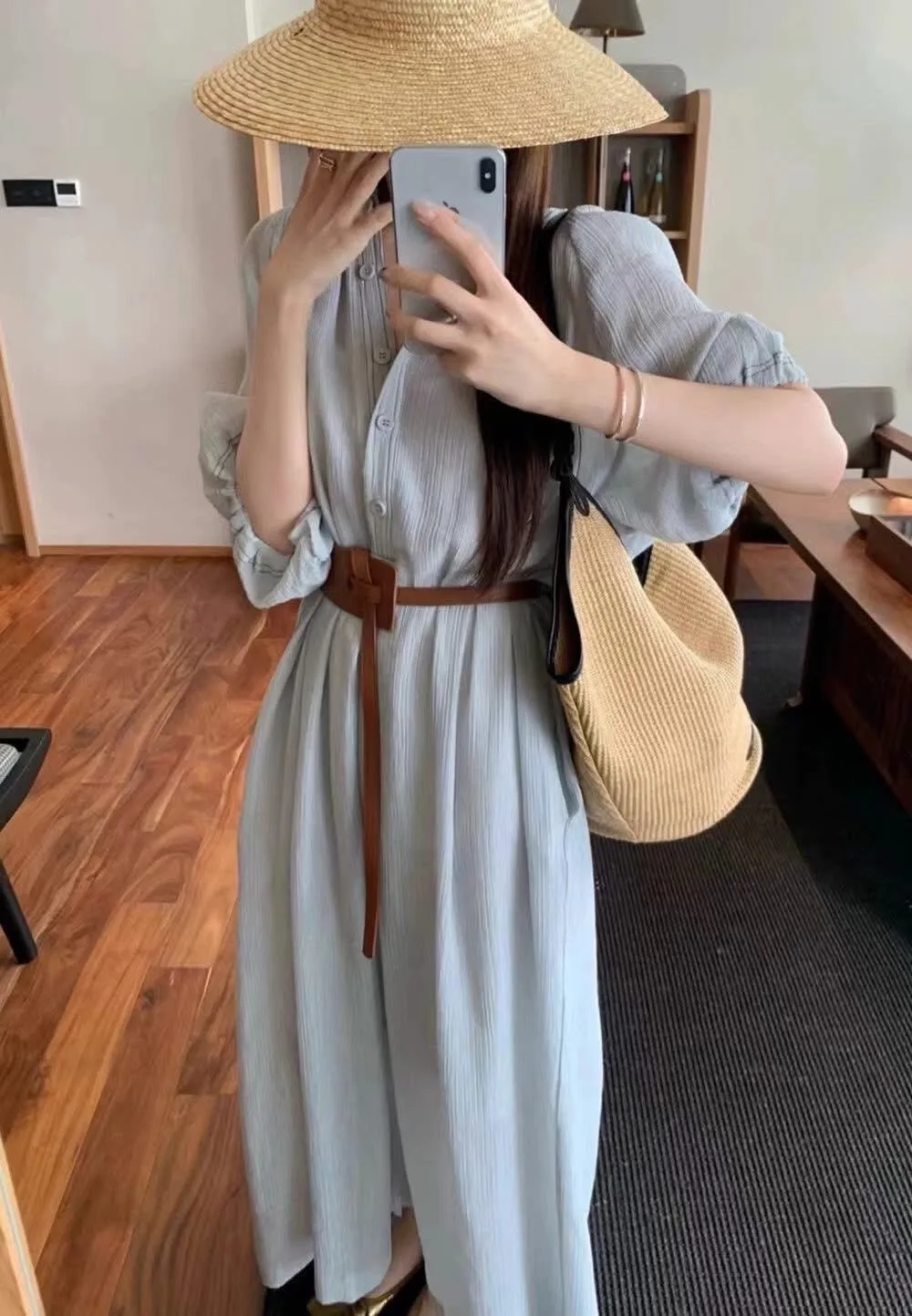 這件洋裝最迷人的,就是那種獨特的雪紡棉麻「柔霧感」面料