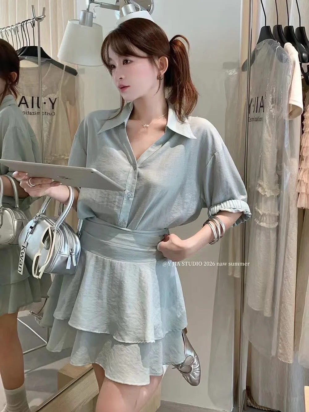 襯衫剪裁順身,重點是下半身的荷葉裙擺設計