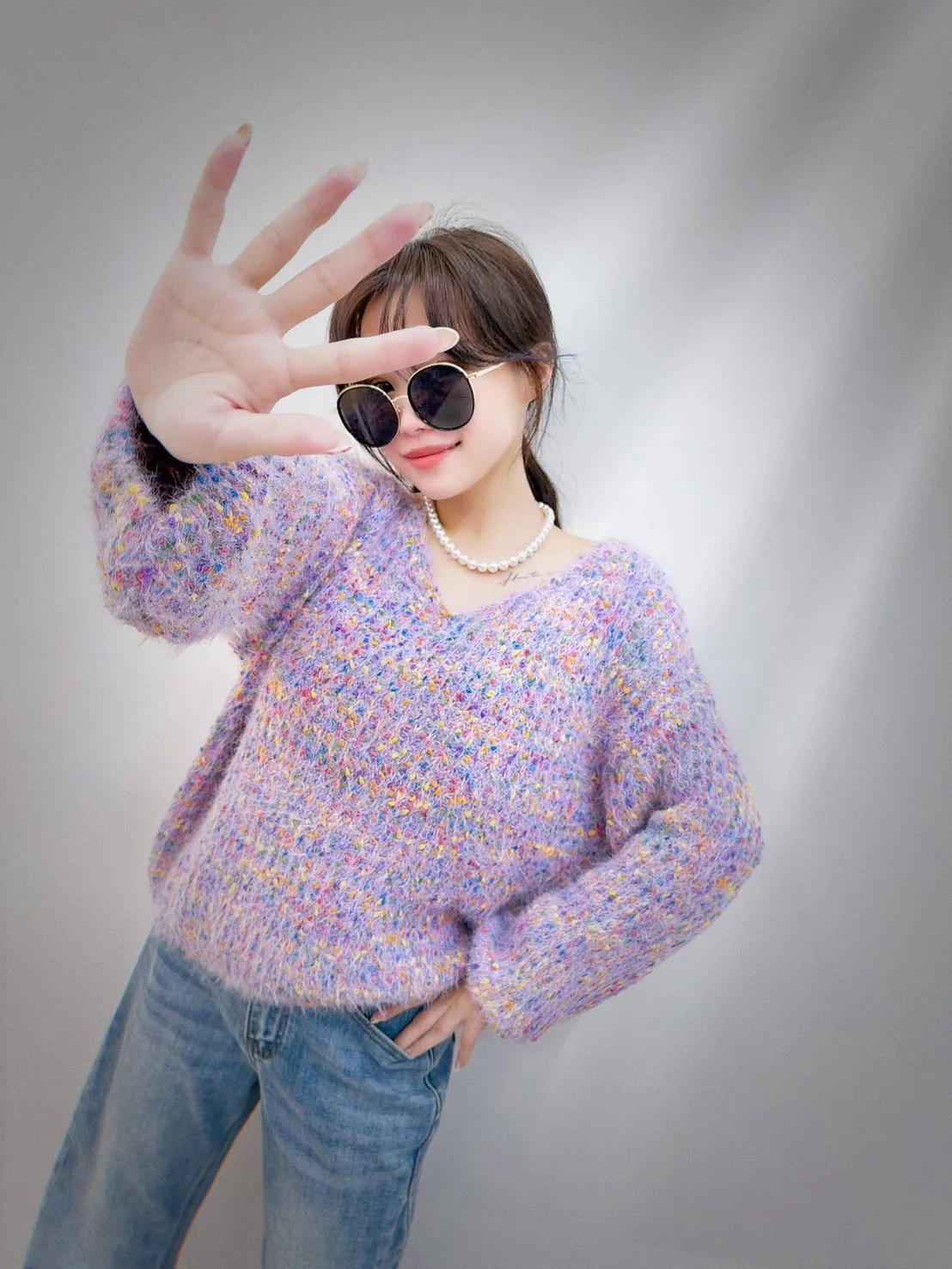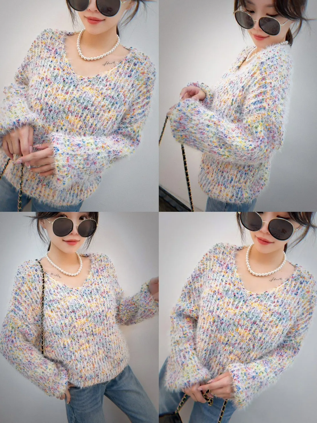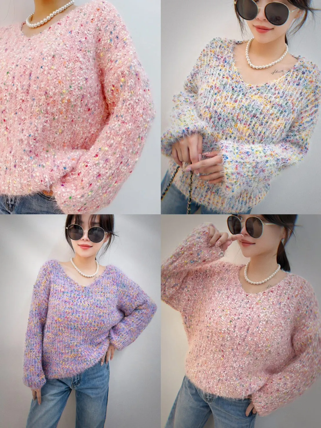 #軟糯荳荳粒針織 一穿就懂的柔軟度 #像雲朵一樣的軟糯觸感 細緻荳荳粒混色紗線 #低調卻很有存在感 #近看才懂它的高級 親膚不刺癢 彈性佳、活動不受限 微寬鬆版型,修飾身形 V 領設計,顯臉小又有女人味 肩寬54 ‘ 胸圍59 ’ 全長57公分