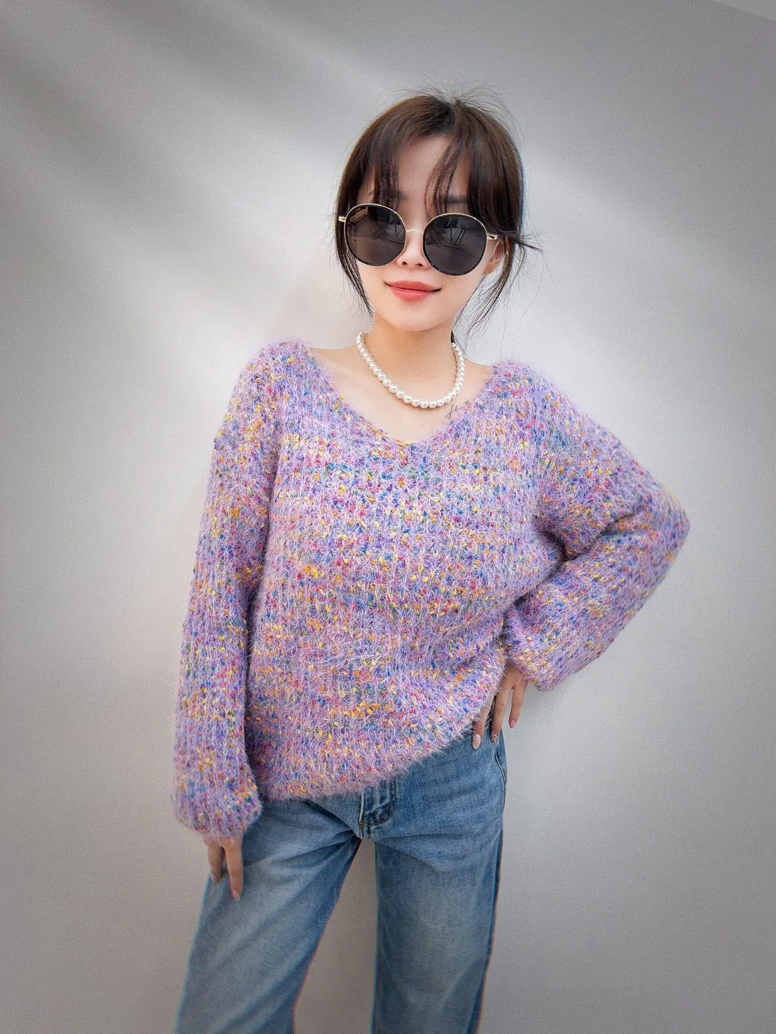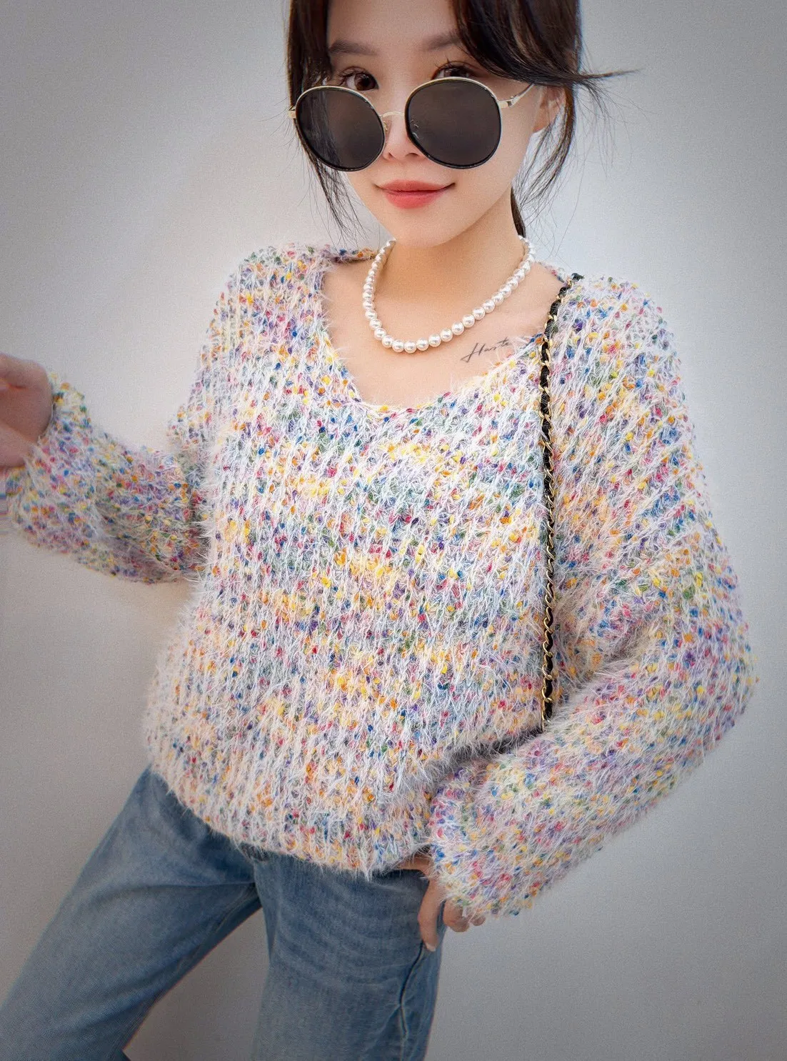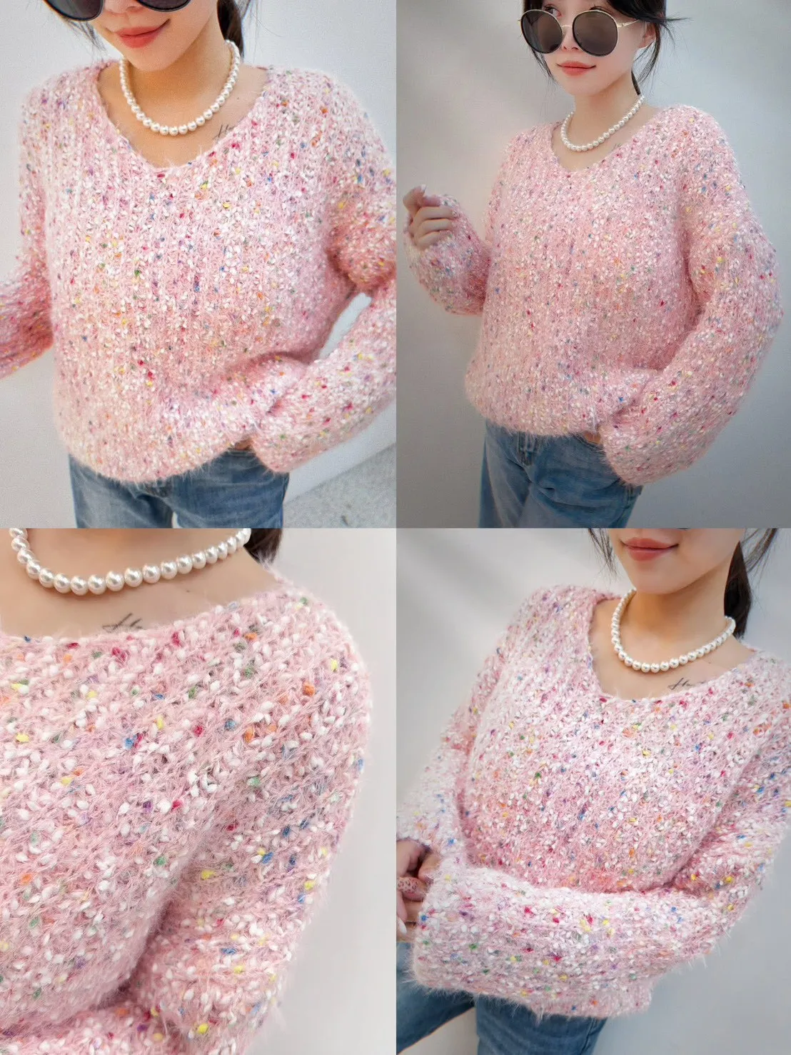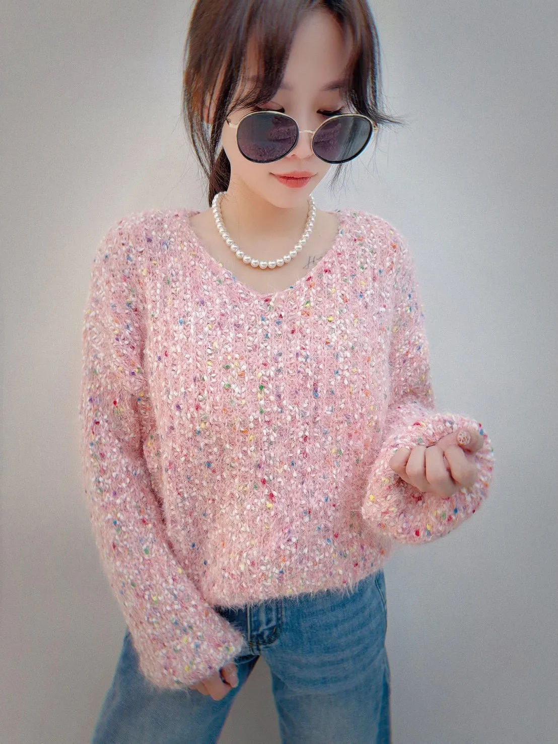 #軟糯荳荳粒針織 一穿就懂的柔軟度 #像雲朵一樣的軟糯觸感 細緻荳荳粒混色紗線 #低調卻很有存在感 #近看才懂它的高級 親膚不刺癢 彈性佳、活動不受限 微寬鬆版型,修飾身形 V 領設計,顯臉小又有女人味 肩寬54 ‘ 胸圍59 ’ 全長57公分