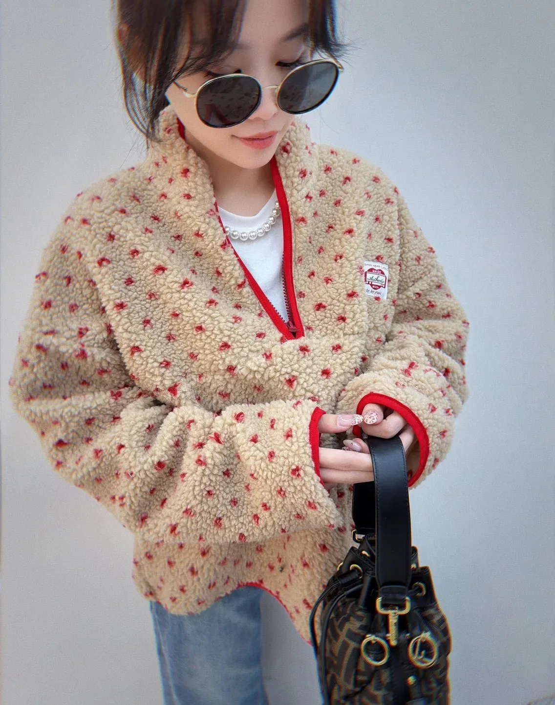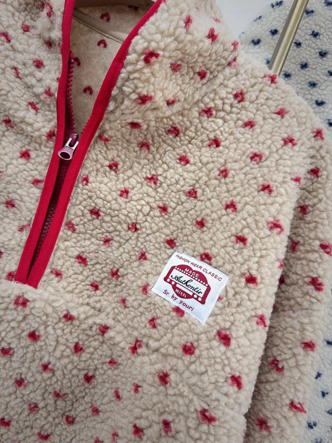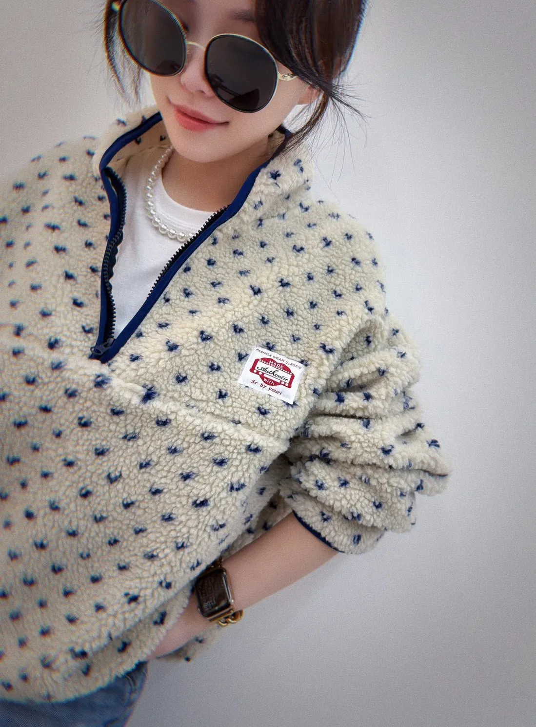 #好舒服小點點羊羔毛半開拉鍊上衣 細緻仿羊羔毛絨感 摸起來柔軟不刺膚 穿上身立刻感受到溫暖包覆感 不厚重卻很保暖,冬天單穿或內搭都很可以 滿版小點點設計 + 低調可愛不浮誇 撞色半開拉鍊+立領設計 修飾臉型 拉鍊拉開更有層次感 寬鬆版型不挑身形 內搭發熱衣也不會顯臃腫 日常出門、上班、帶小孩都很實穿 親膚仿羊羔毛的保暖 輕暖不厚重還極致甜美 半開拉鍊設計超修飾小臉 可愛不幼稚 + 時髦偏好看 冬天必備保暖款 + 即穿顯瘦時髦 肩寬60 ‘ 胸圍 64 ’ 全長60公分
