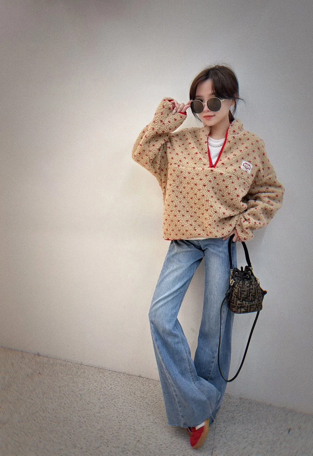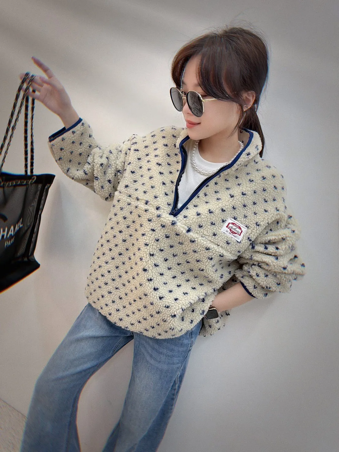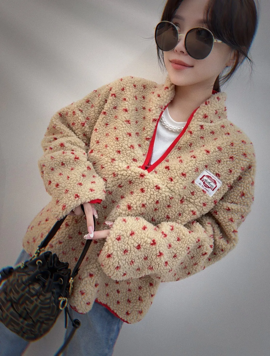 #好舒服小點點羊羔毛半開拉鍊上衣 細緻仿羊羔毛絨感 摸起來柔軟不刺膚 穿上身立刻感受到溫暖包覆感 不厚重卻很保暖,冬天單穿或內搭都很可以 滿版小點點設計 + 低調可愛不浮誇 撞色半開拉鍊+立領設計 修飾臉型 拉鍊拉開更有層次感 寬鬆版型不挑身形 內搭發熱衣也不會顯臃腫 日常出門、上班、帶小孩都很實穿 親膚仿羊羔毛的保暖 輕暖不厚重還極致甜美 半開拉鍊設計超修飾小臉 可愛不幼稚 + 時髦偏好看 冬天必備保暖款 + 即穿顯瘦時髦 肩寬60 ‘ 胸圍 64 ’ 全長60公分