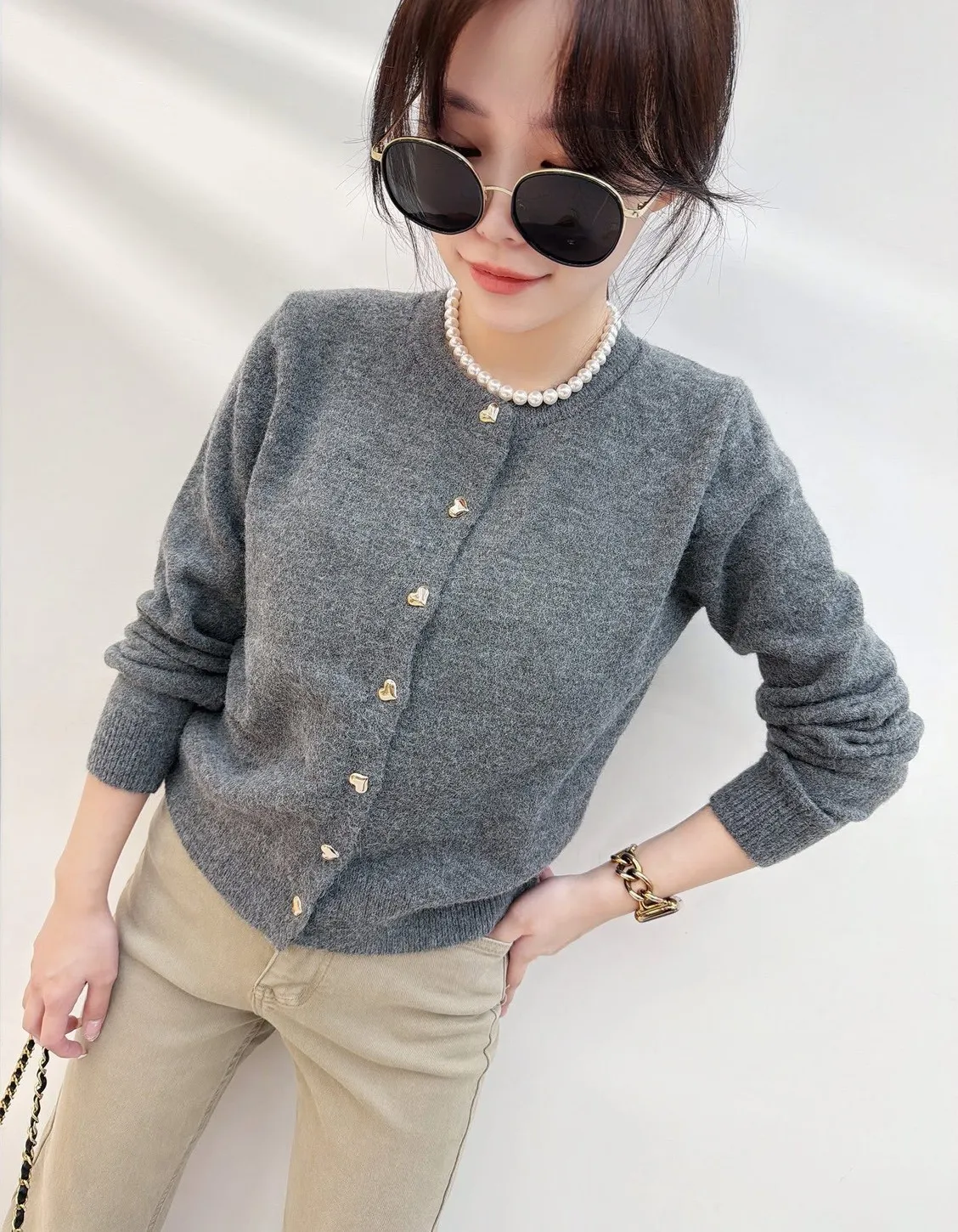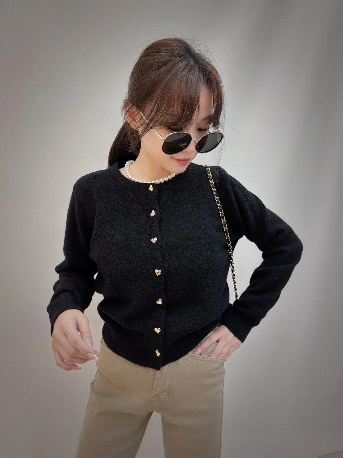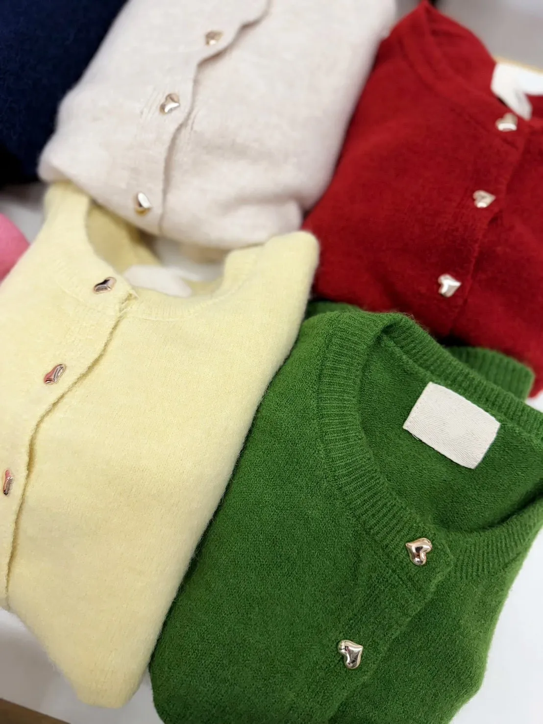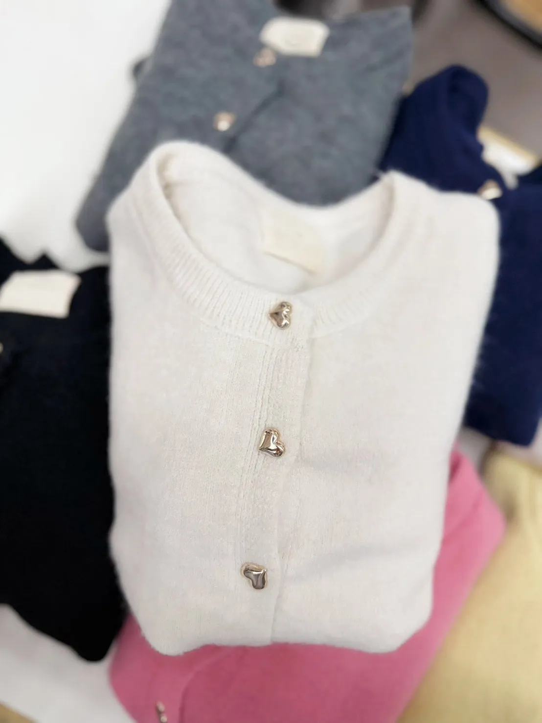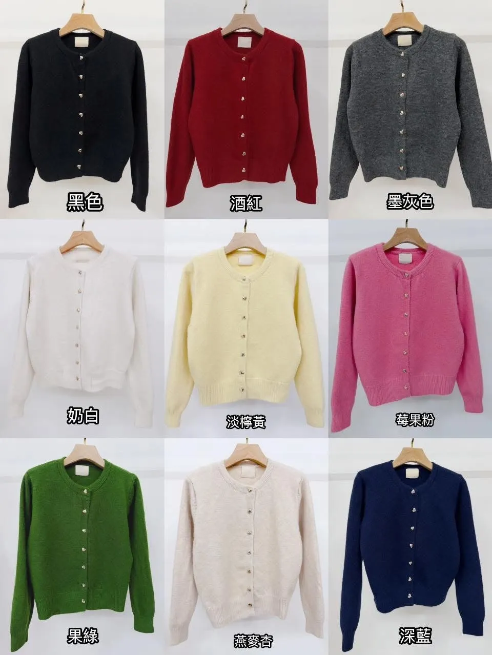 美質感 愛心釦厚磅數羊絨針織外套 溫柔不是甜 而是細節剛剛好 用一顆顆精緻愛心釦 點亮日常穿搭的高級感 • 厚磅數羊絨針織: 手感細緻柔軟 保暖卻不厚重 • 親膚不刺癢: 貼身穿也舒服 長時間穿著無負擔 • 愛心金屬釦設計 : 低調可愛 #細節控一眼就懂 肩寬52 ‘ 胸圍 55 ’ 全長53公分