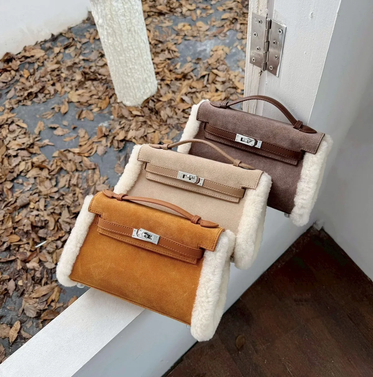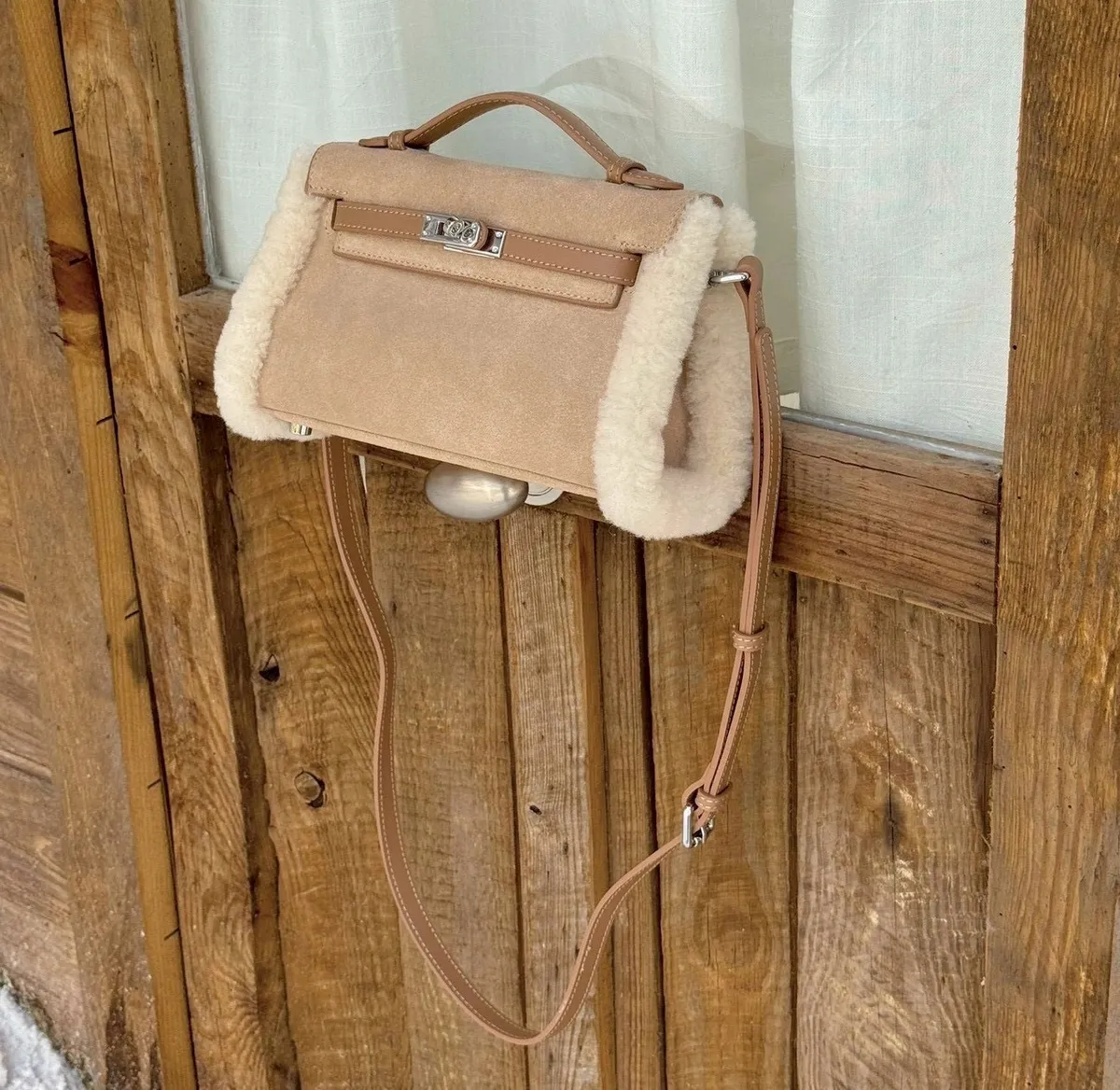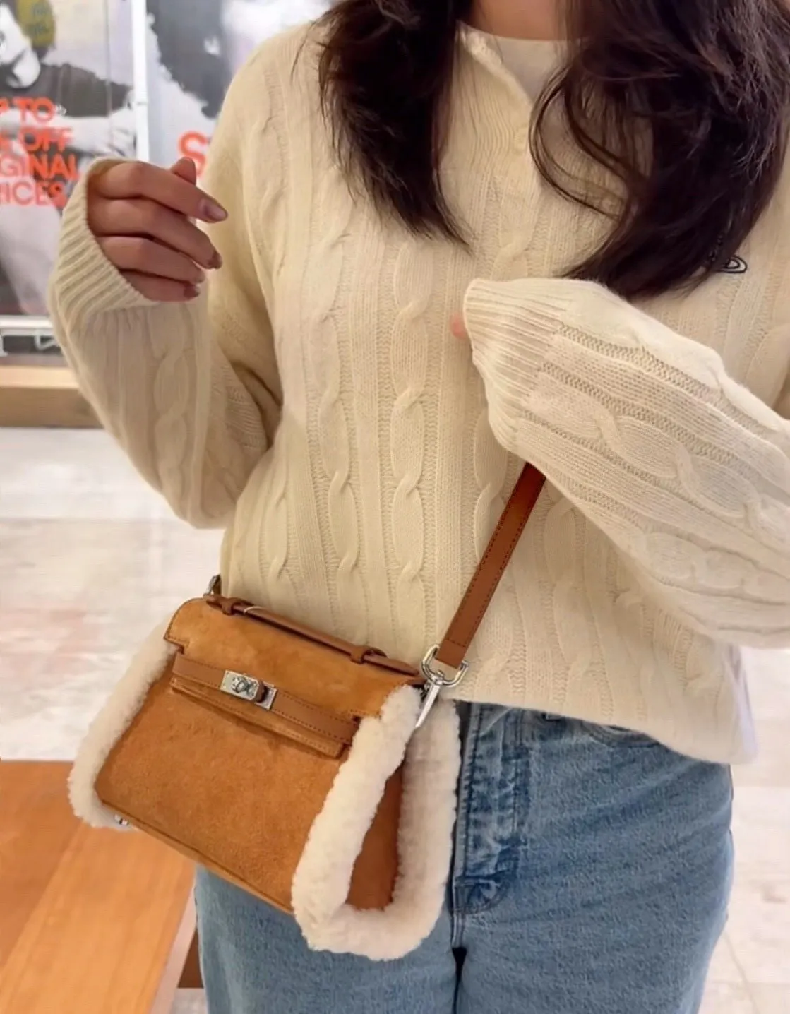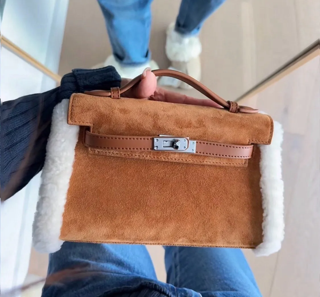 (原價折合臺幣要$5500)這價格趕快先搶再說✨這個冬天一定要入手這款!!啊啊啊啊!凱莉包型 氣質優雅,這款好美🥰 🔸顏色:栗色/沙色/灰色 這款真的太!欠!買!!!😍🔥 曾經一度缺貨都買不到的包包終於來了! 提升冬天穿搭質感的秘密💖藏在這顆包包里, 簡單俐落包型與溫暖鬆弛感完美的結合💯肩背/手提/斜背都合適!背上它走到哪都是焦點💖一背上就散發出溫柔氣質不論是休閒或約會穿搭,都能輕鬆搭配柔軟觸感+毛毛拼接,展現低調奢華感✨無論通勤、約會或日常,都能優雅登場 ➰尺寸:24 × 9× 17cm ➰材質:羊毛/牛反絨/牛皮海外商品預計等待時間約6~8周工作天(如遇延遲敬請見諒)不接急單 可以等待再下單唷提前到貨 提前寄出排單皆依照下單付款速度排序越早下單越排前面唷!