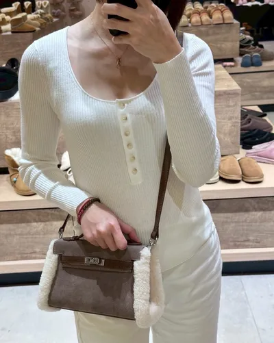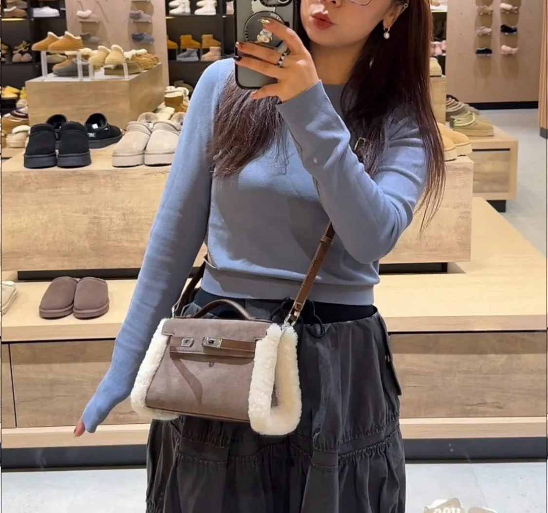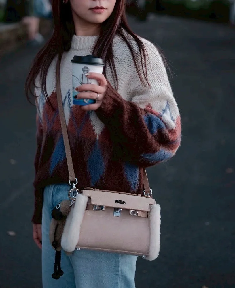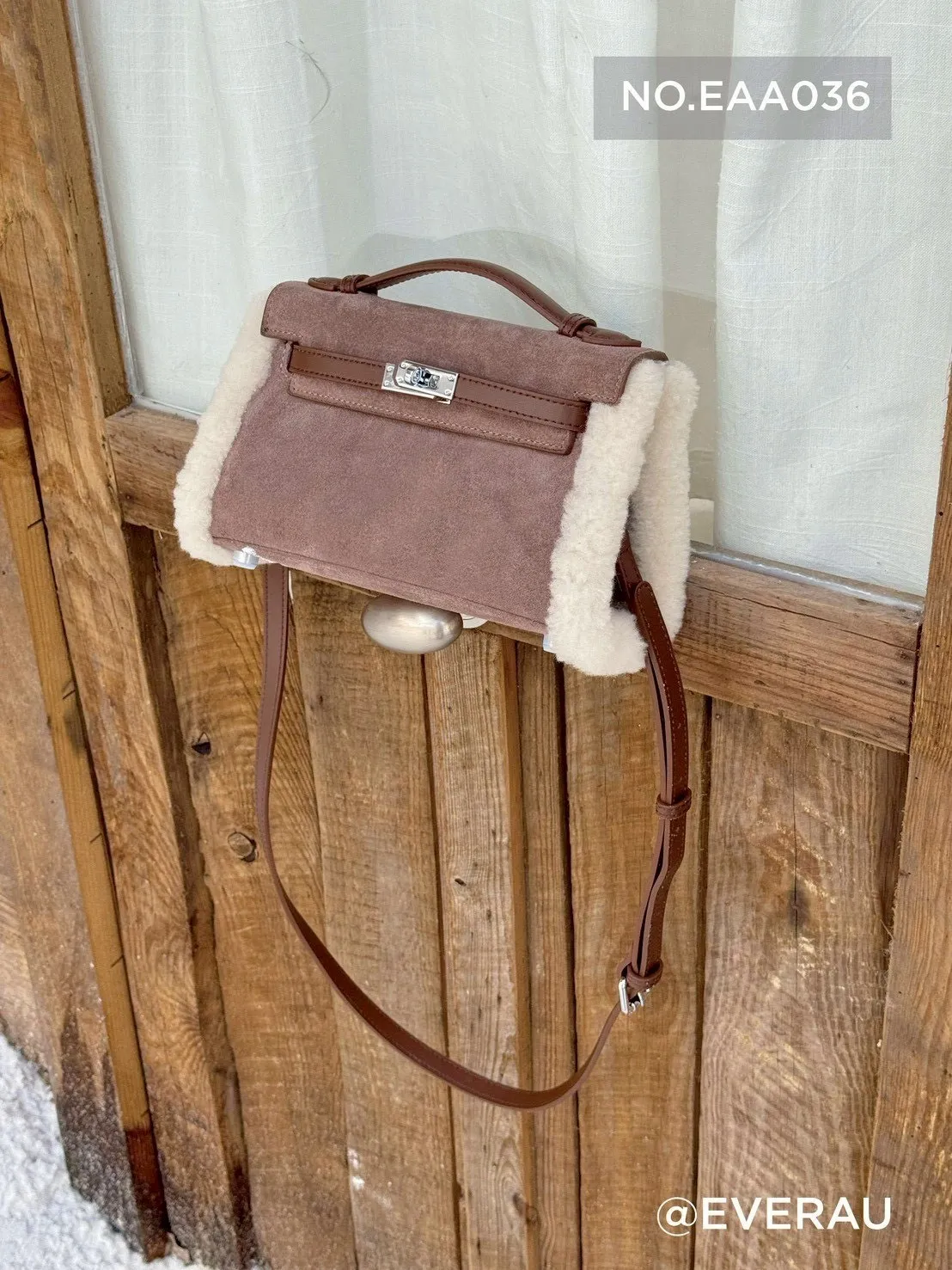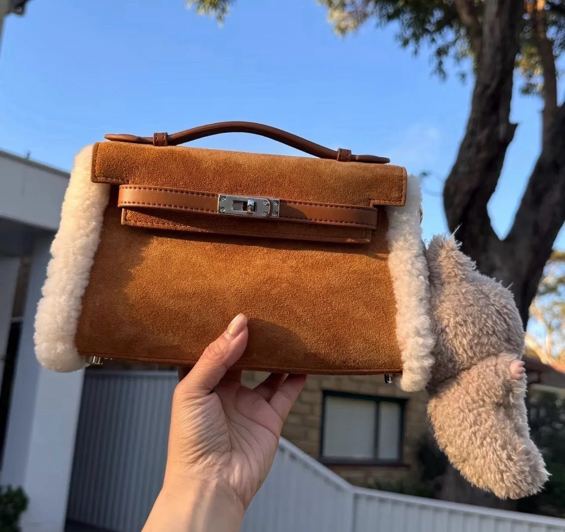 (原價折合臺幣要$5500)這價格趕快先搶再說✨這個冬天一定要入手這款!!啊啊啊啊!凱莉包型 氣質優雅,這款好美🥰 🔸顏色:栗色/沙色/灰色 這款真的太!欠!買!!!😍🔥 曾經一度缺貨都買不到的包包終於來了! 提升冬天穿搭質感的秘密💖藏在這顆包包里, 簡單俐落包型與溫暖鬆弛感完美的結合💯肩背/手提/斜背都合適!背上它走到哪都是焦點💖一背上就散發出溫柔氣質不論是休閒或約會穿搭,都能輕鬆搭配柔軟觸感+毛毛拼接,展現低調奢華感✨無論通勤、約會或日常,都能優雅登場 ➰尺寸:24 × 9× 17cm ➰材質:羊毛/牛反絨/牛皮海外商品預計等待時間約6~8周工作天(如遇延遲敬請見諒)不接急單 可以等待再下單唷提前到貨 提前寄出排單皆依照下單付款速度排序越早下單越排前面唷!