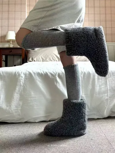 羊毛厚度剛好不刺腳、超彈材質肉肉腳穿也舒適,完全不緊勒也不易掉。