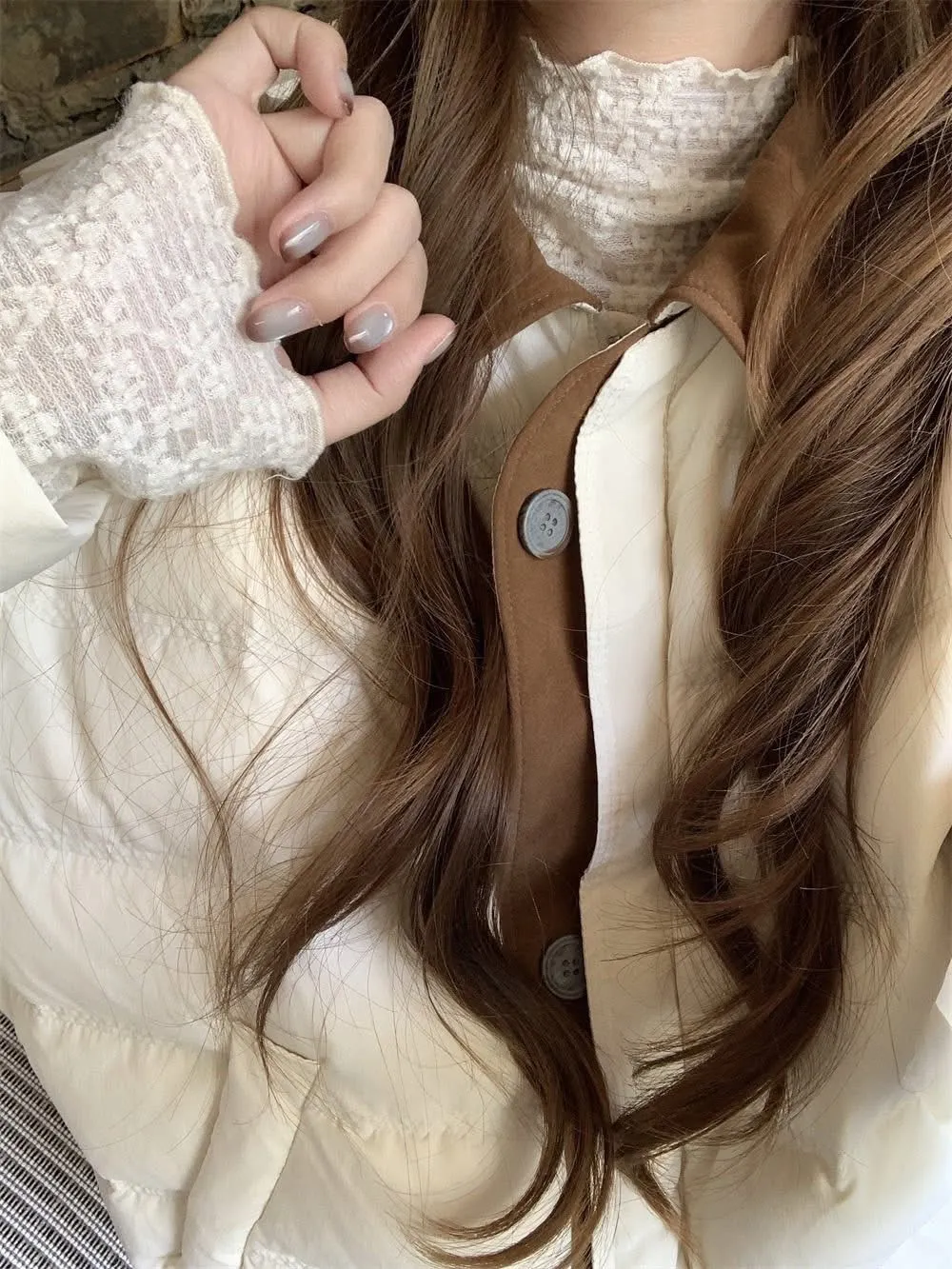 #仙氣爆棚的「蕾絲打底神隊友」 這件真的太犯規…上身直接變成溫柔系女主 整件是細緻蕾絲紋理+微透感,單穿就很有質感,整套穿搭拉滿「高級感」 袖口跟領口都有小荷葉滾邊,露出來一點點就超加分! 蕾絲紋理超細緻:近看超美 微透打底剛剛好:疊穿層次感瞬間有 領口荷葉邊:小臉又溫柔,搭針織/外套都美 袖口自然延伸:當內搭露手袖超會搭 米色超百搭:配毛衣、背心、外套都溫柔爆表 平量(cm) S:衣長56/肩寬36/胸圍41 M:衣長57/肩寬37/胸圍43