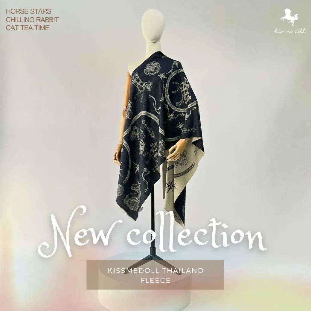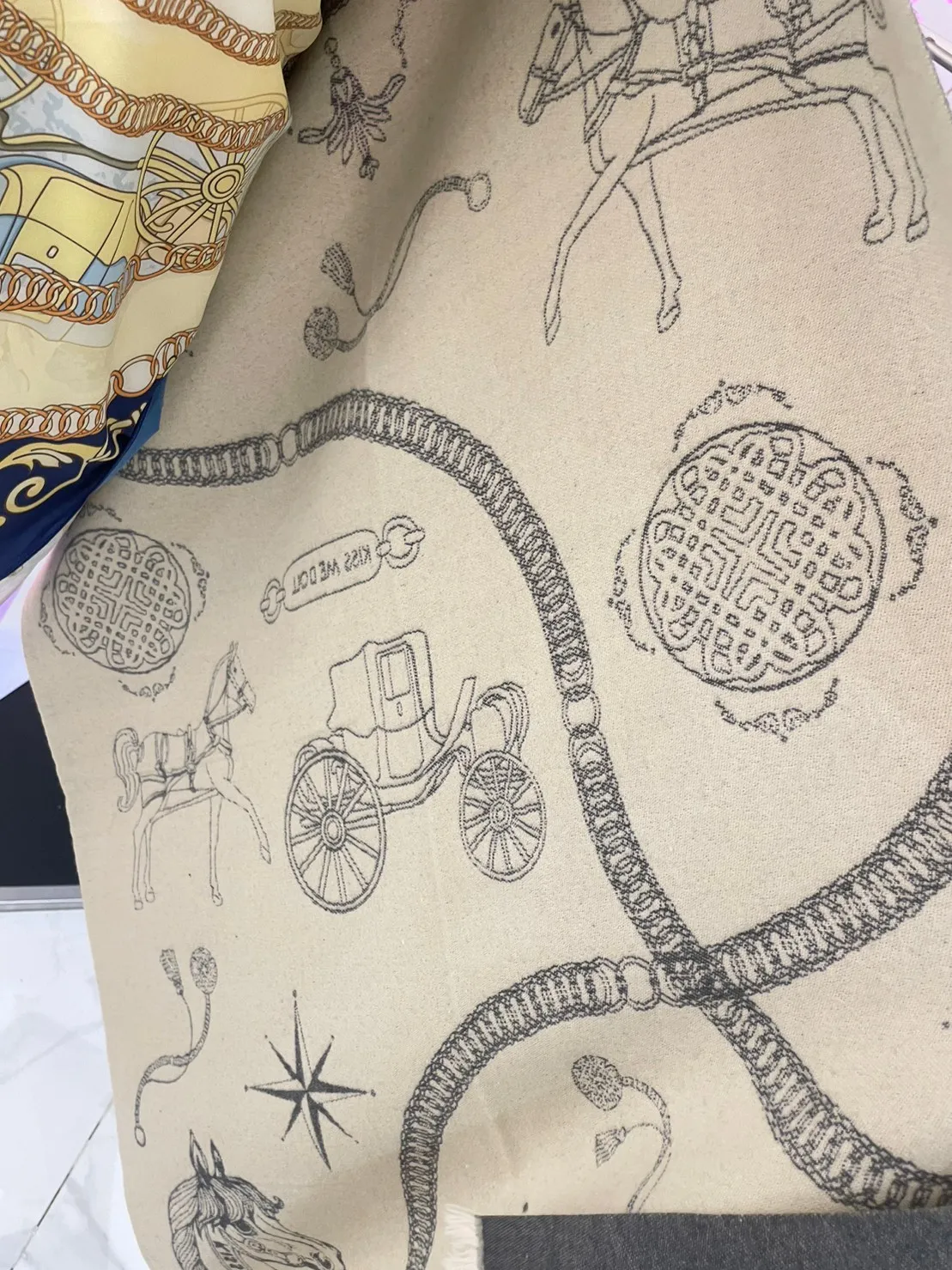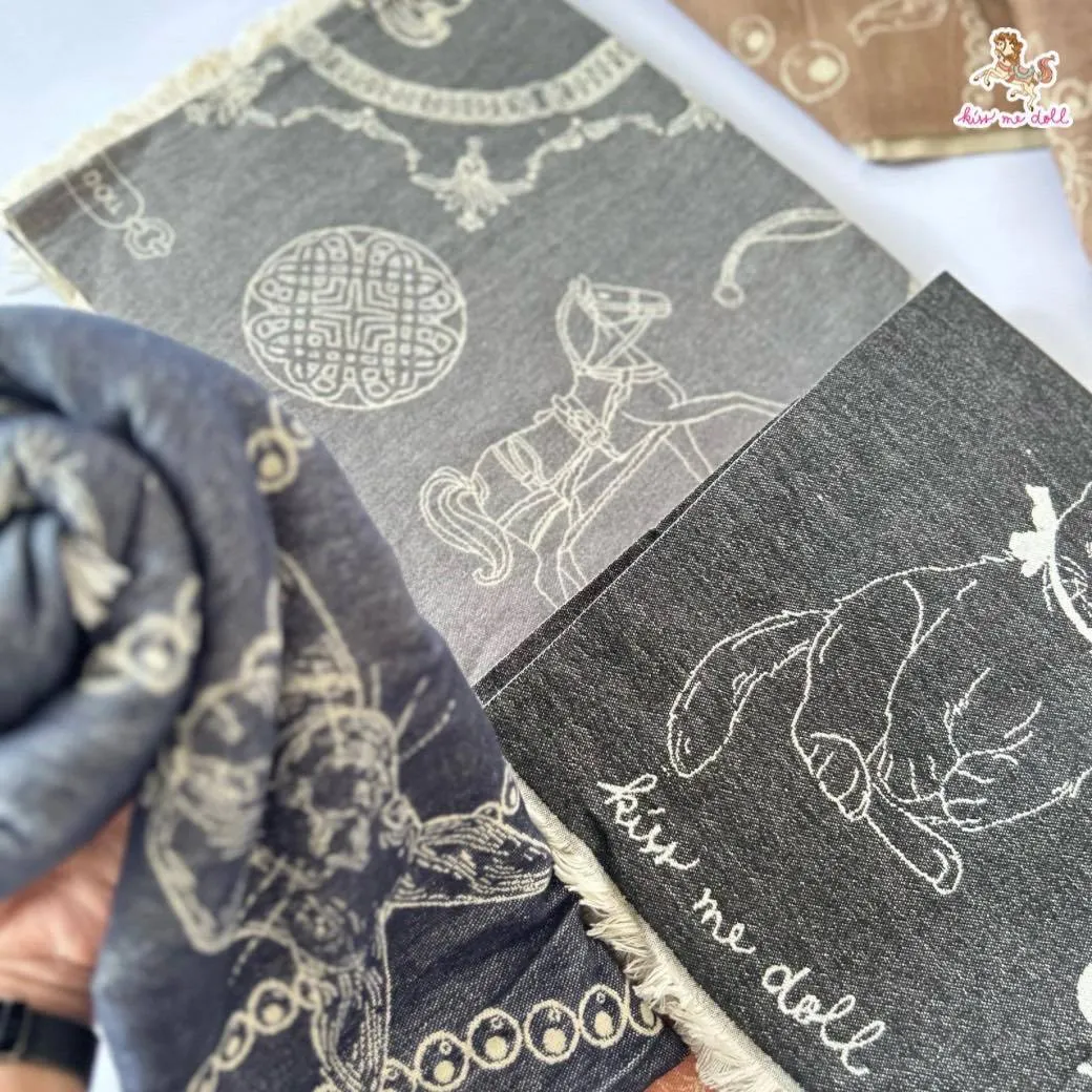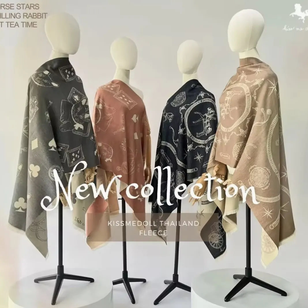 現貨 泰國Kiss me doll愛馬仕風圖騰雙面羊毛圍巾(附品牌禮盒)