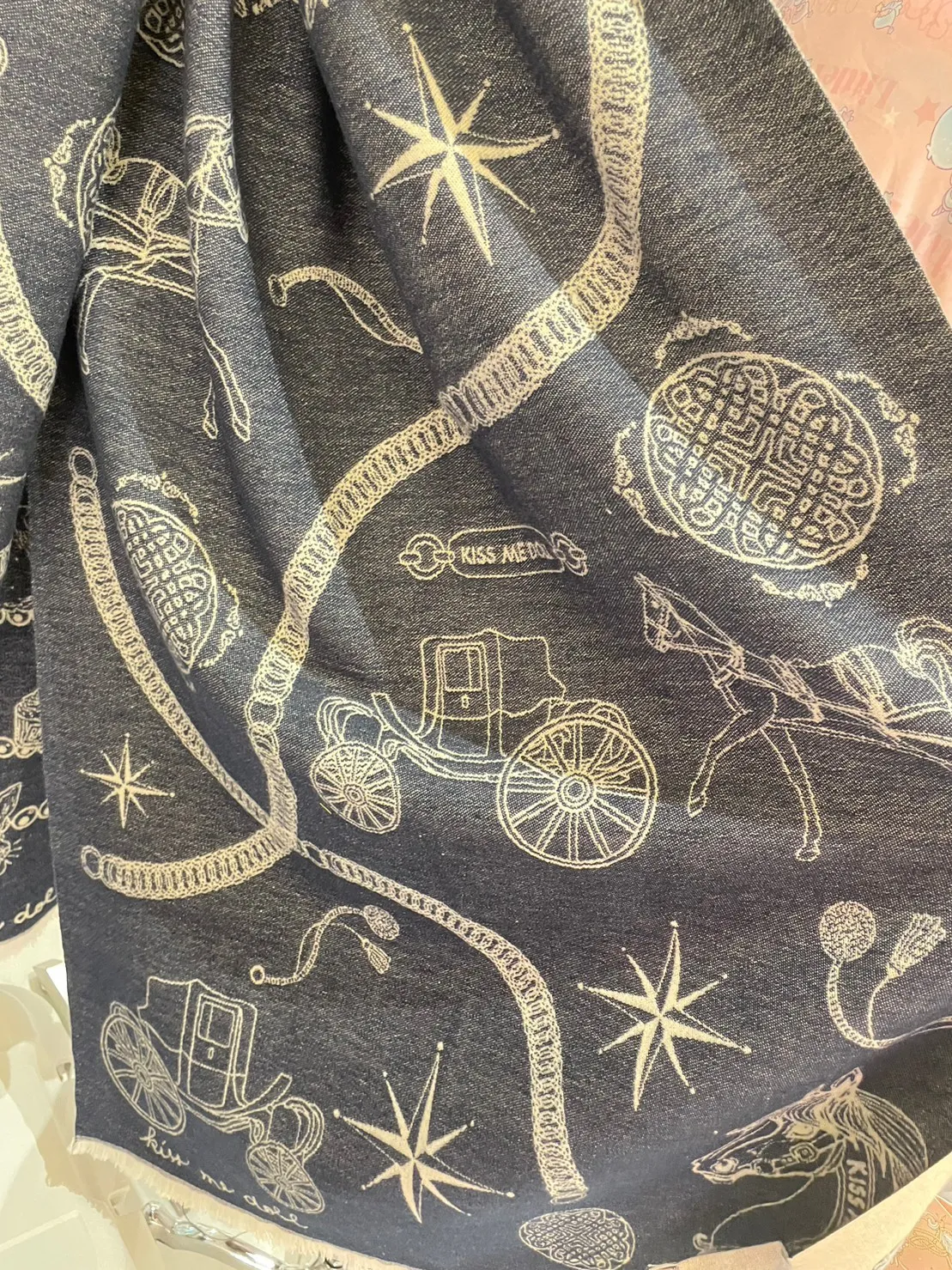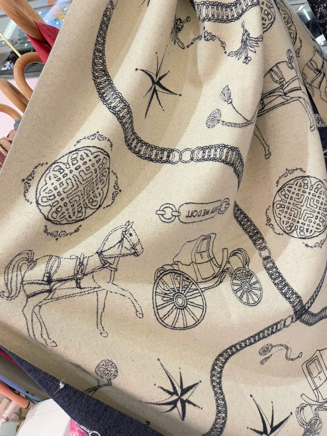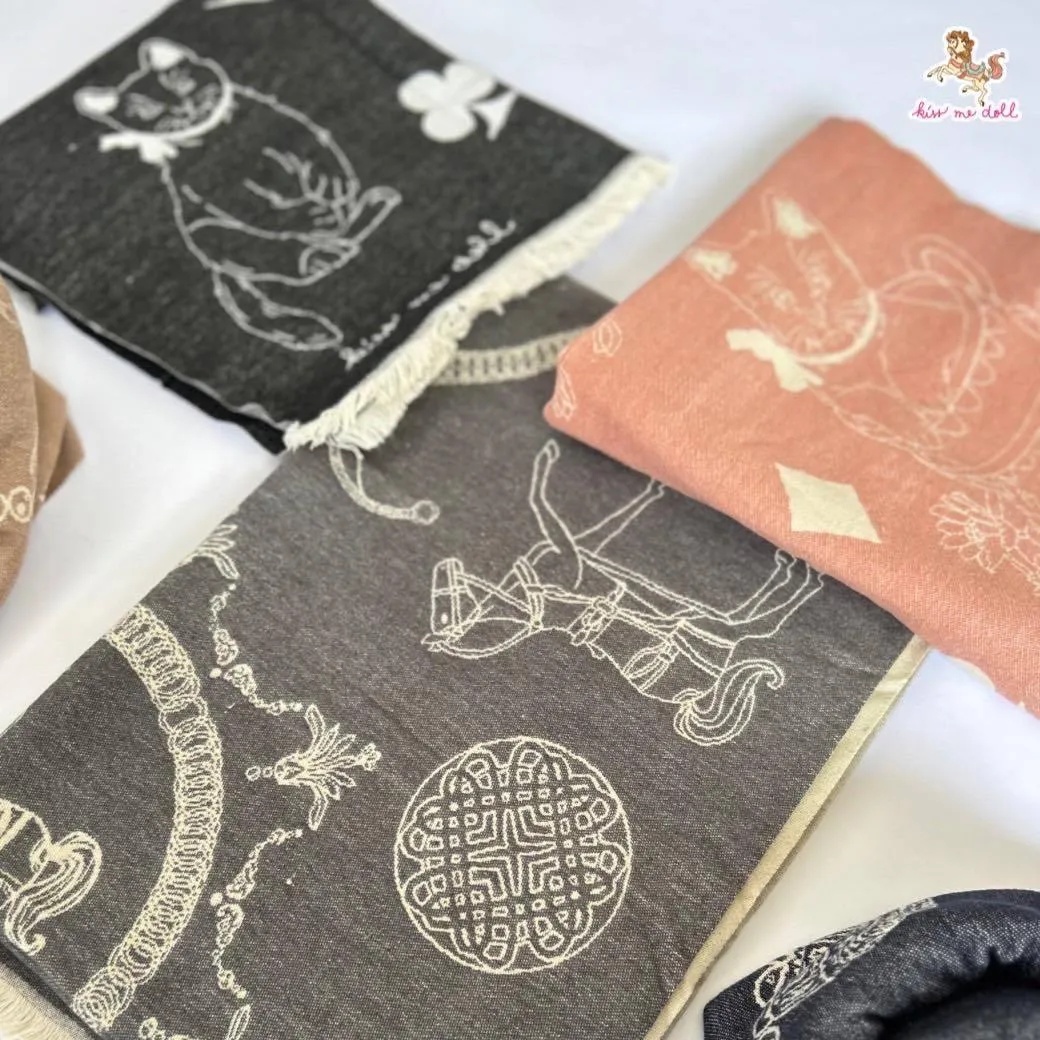 現貨 泰國Kiss me doll愛馬仕風圖騰雙面羊毛圍巾(附品牌禮盒)