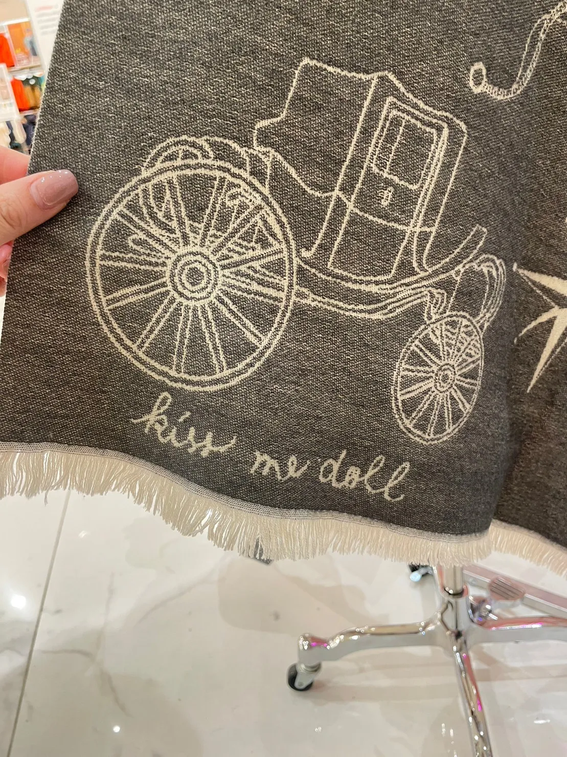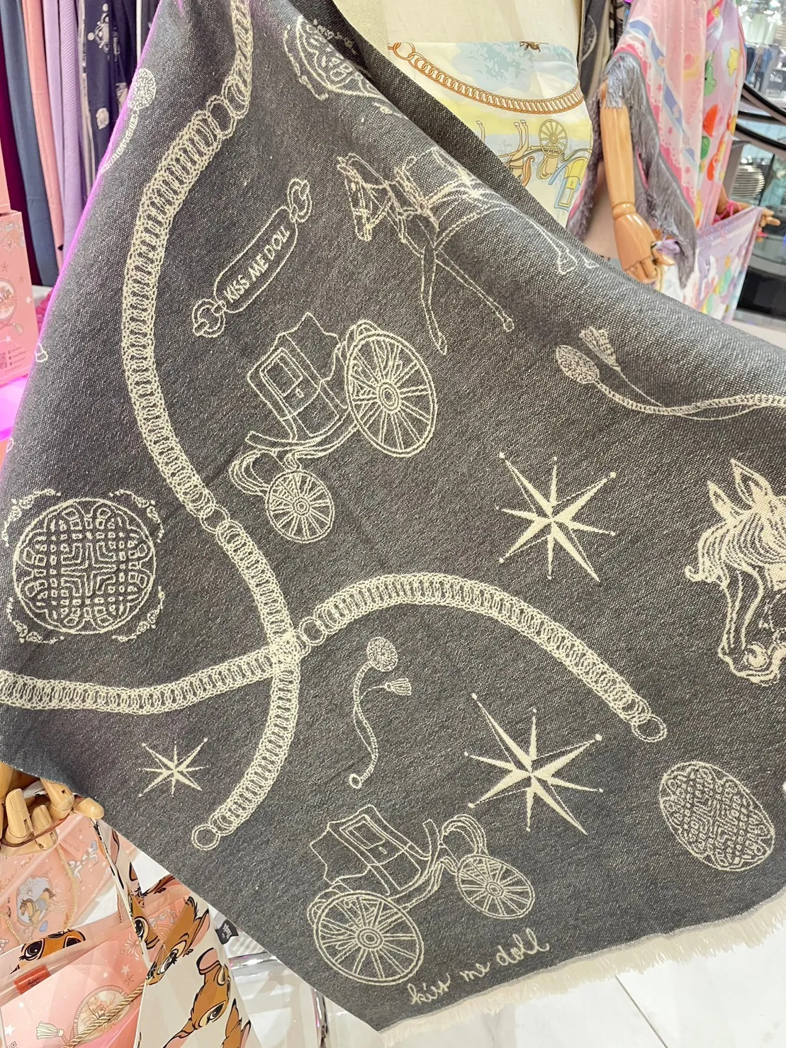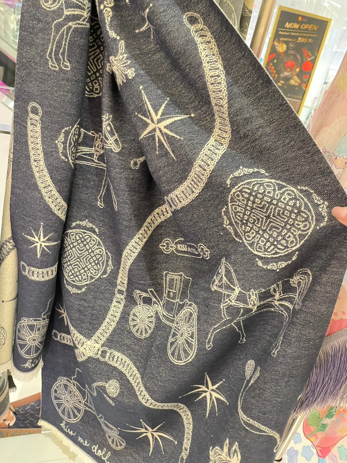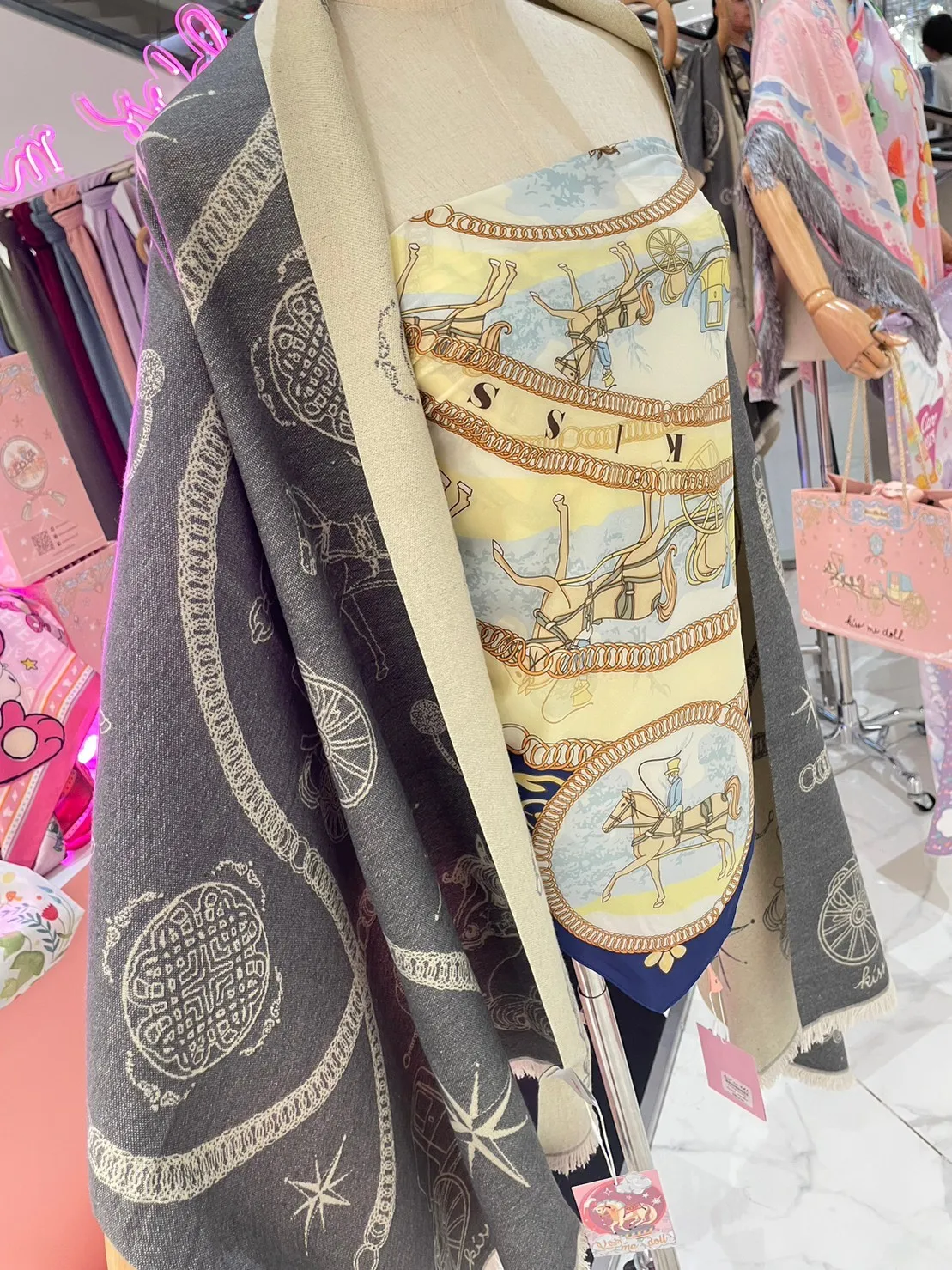 現貨 泰國Kiss me doll愛馬仕風圖騰雙面羊毛圍巾(附品牌禮盒)