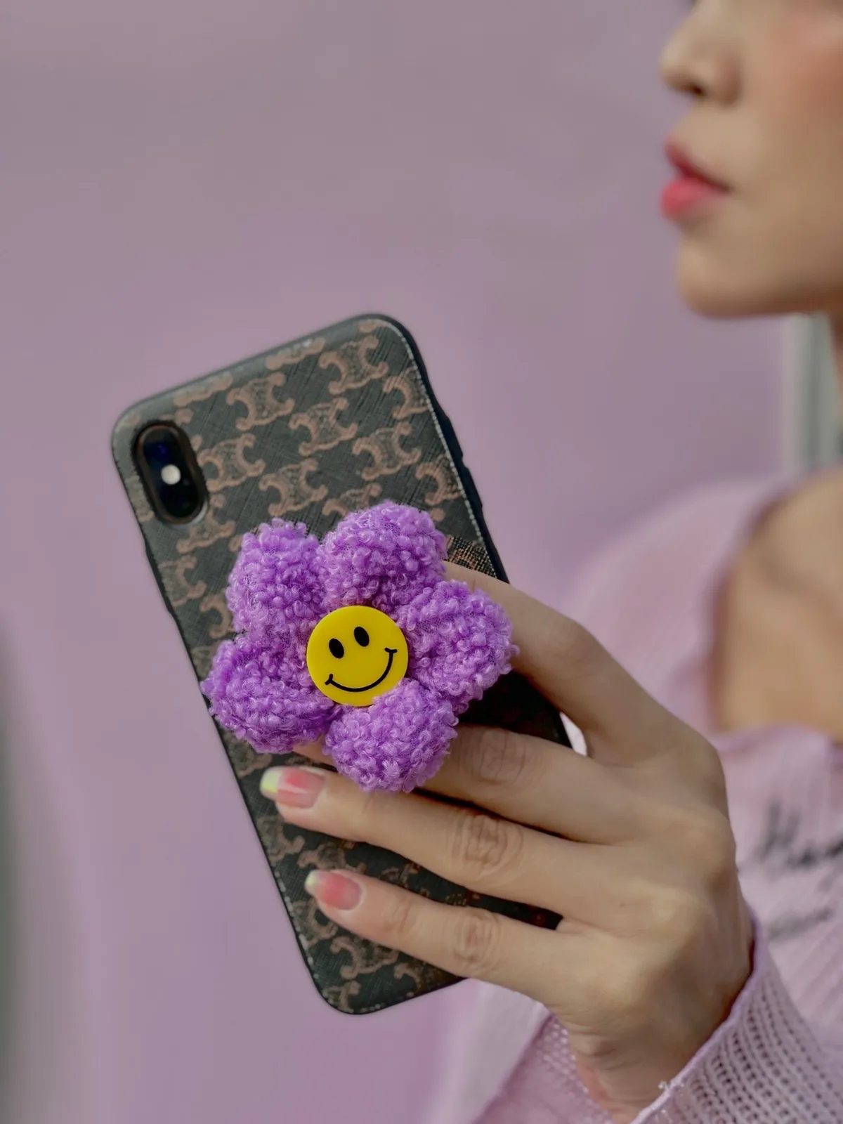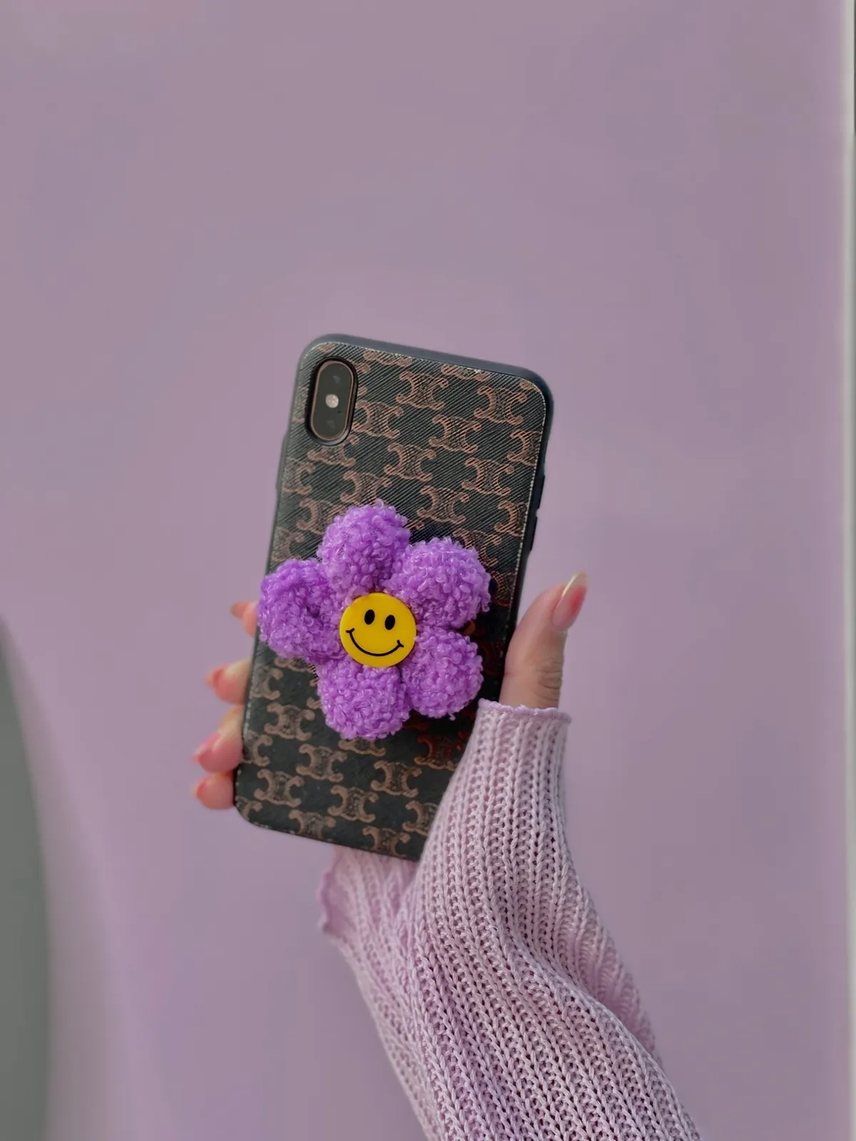 韓國 笑臉小雛菊 毛線氈手機架