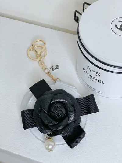 立體山茶花 打開是鏡子的鑰匙圈(黑花)