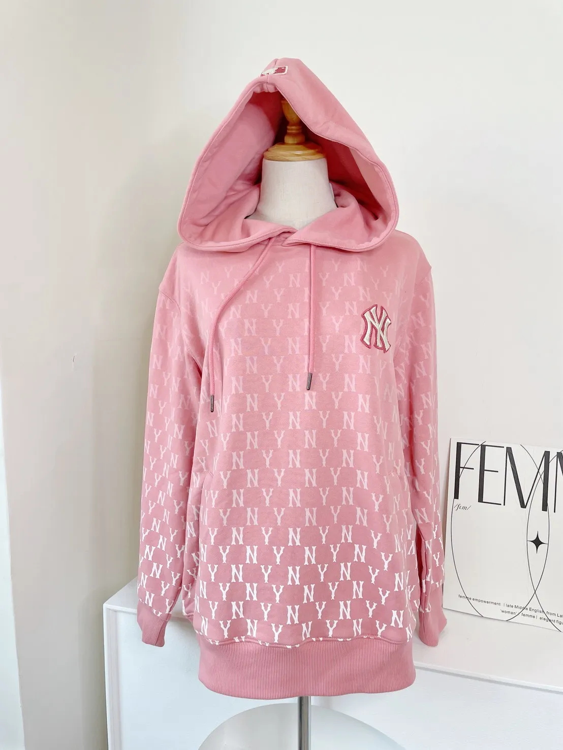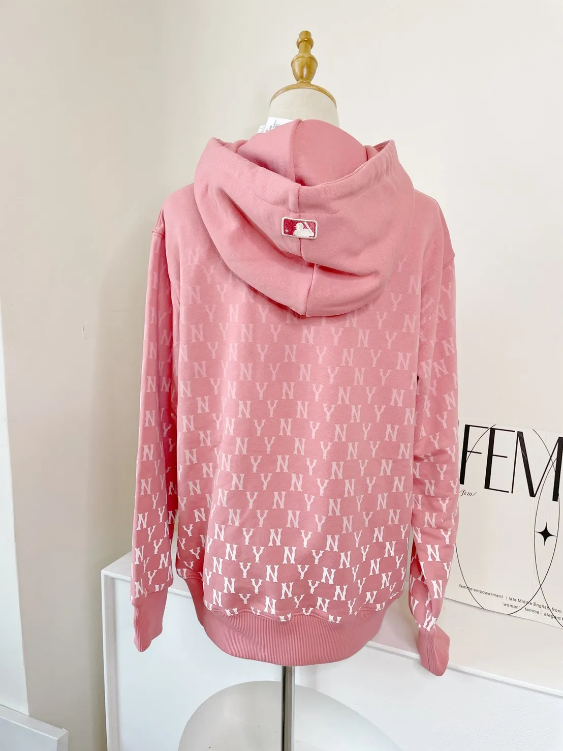 韓國正品MLB 漸層粉LOGO帽T