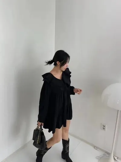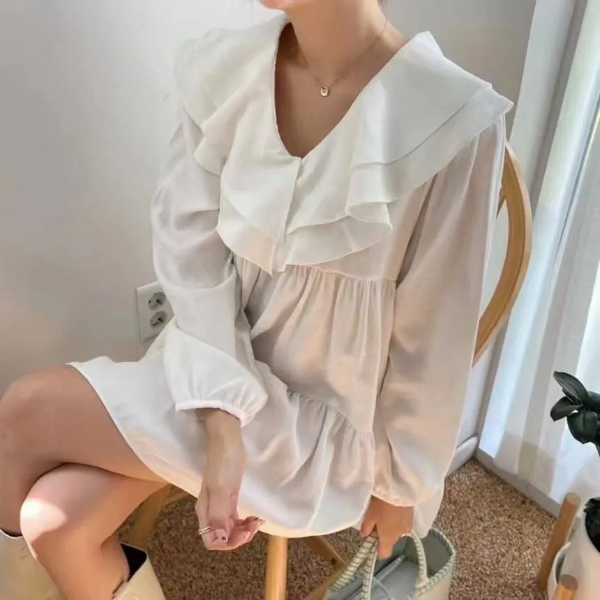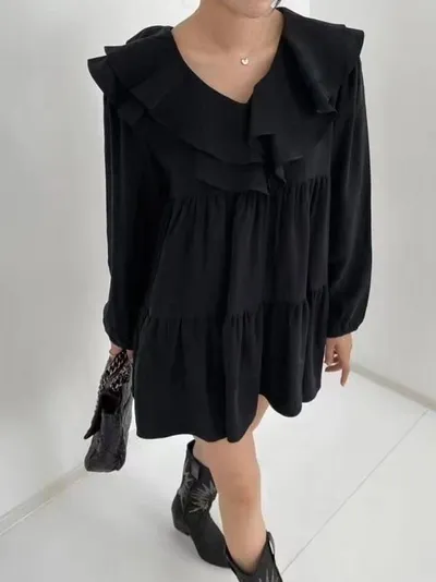 好搭配的氣質雪紡棉荷葉洋裝