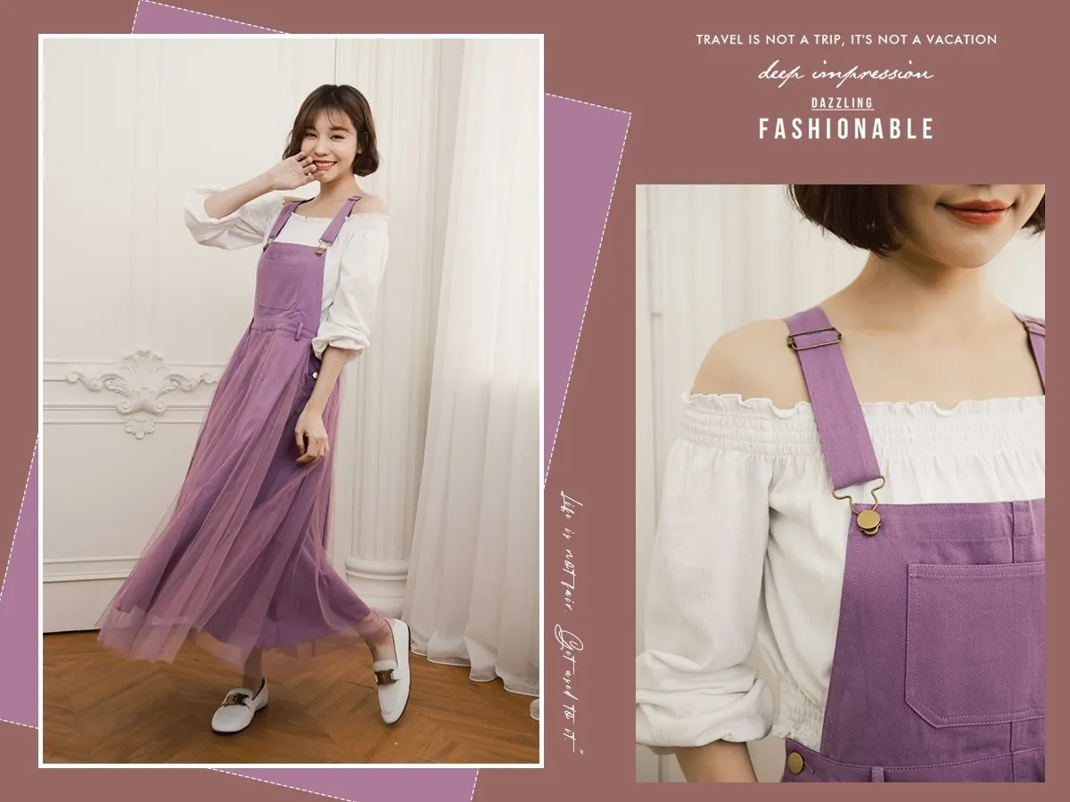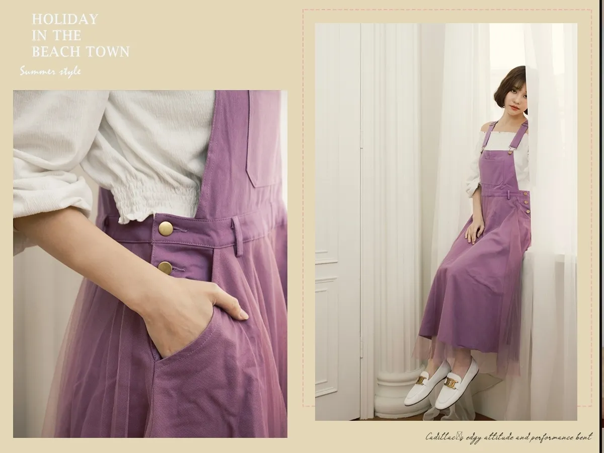 mekooo日系品牌100%全棉 夢幻感吊帶蕾絲紗裙