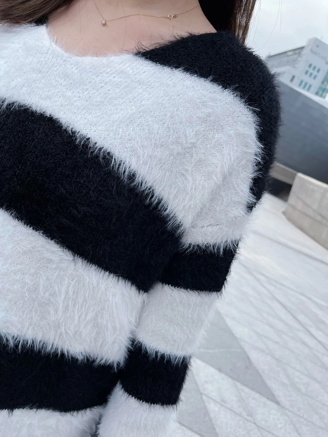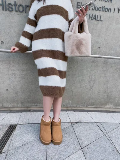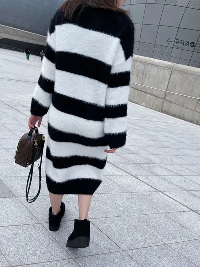 現貨最後一件售完不補❤必買質感太讚 水貂毛條紋長版針織毛衣