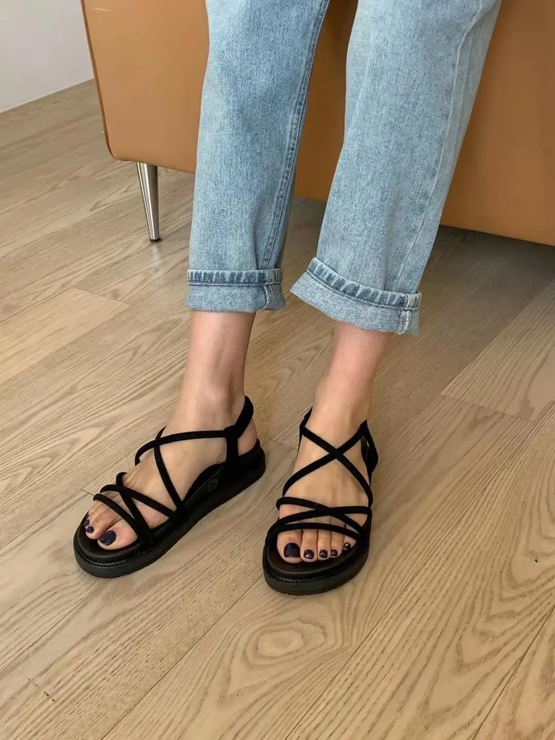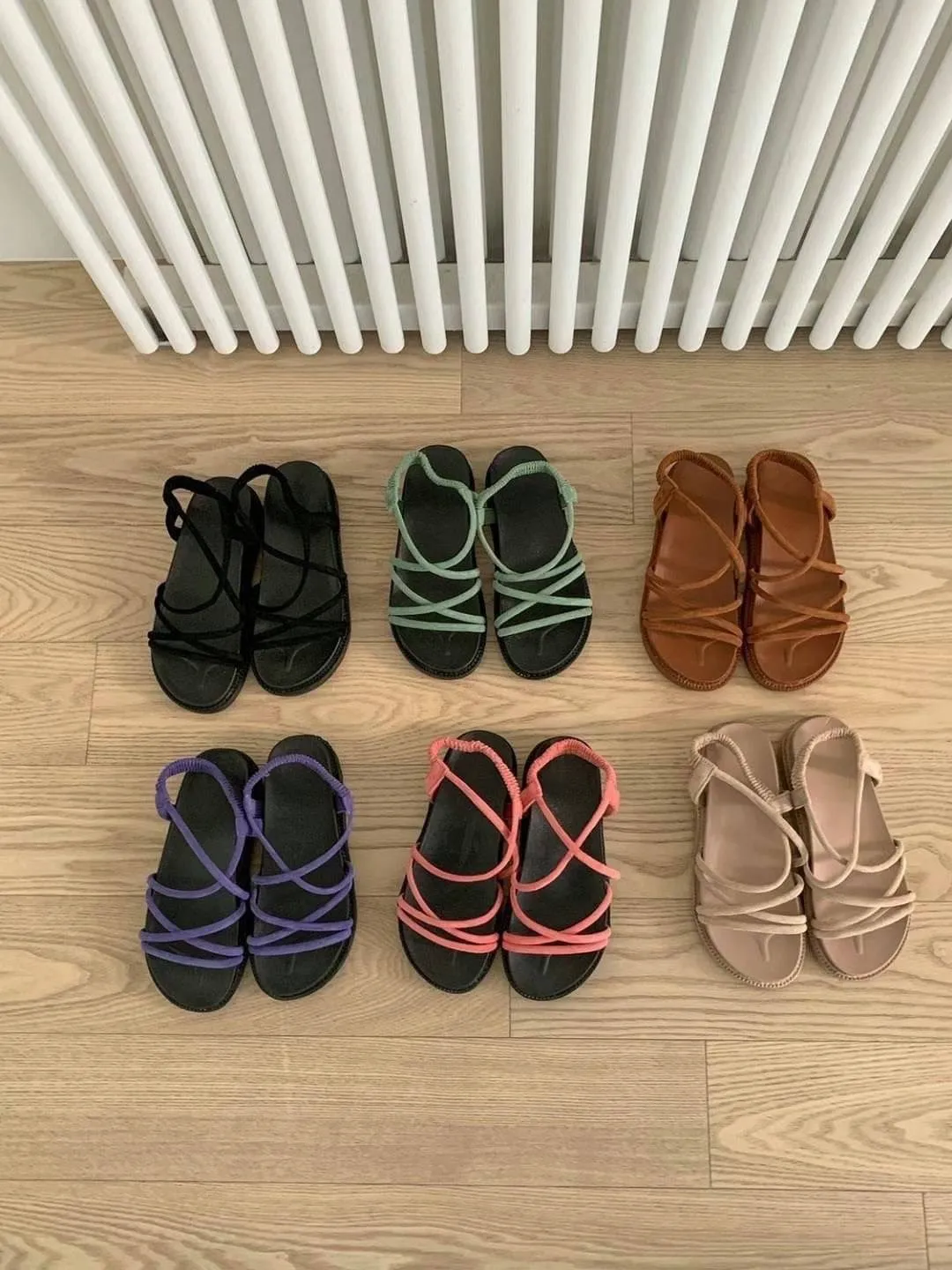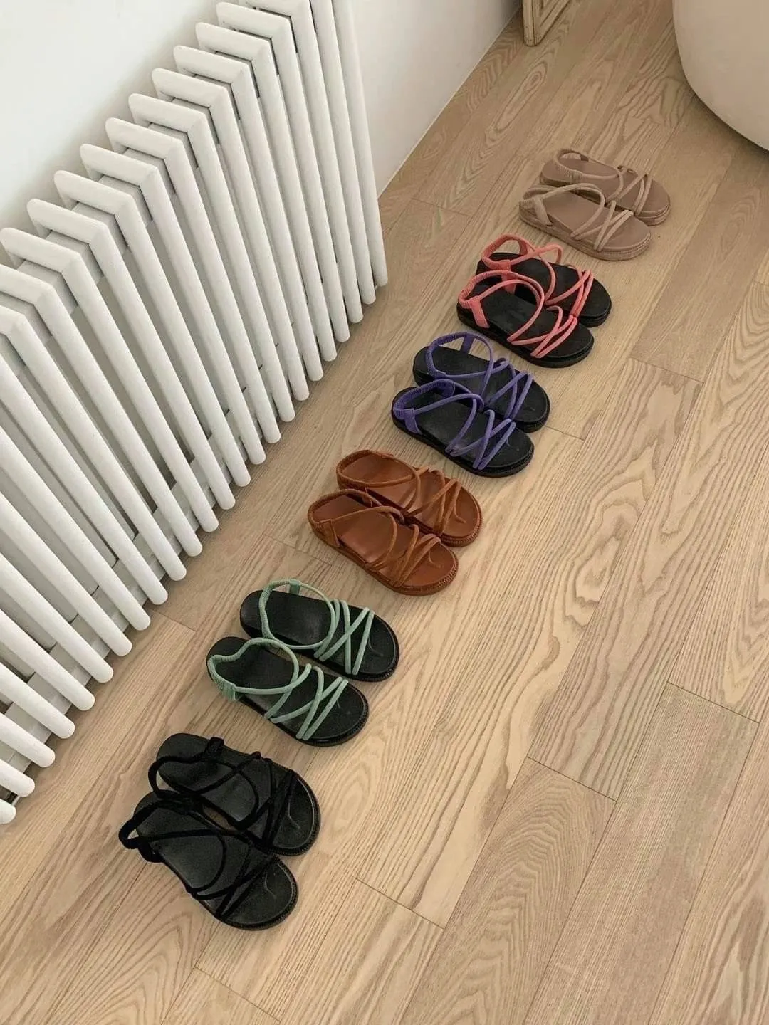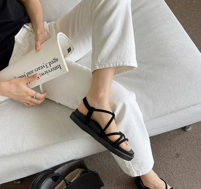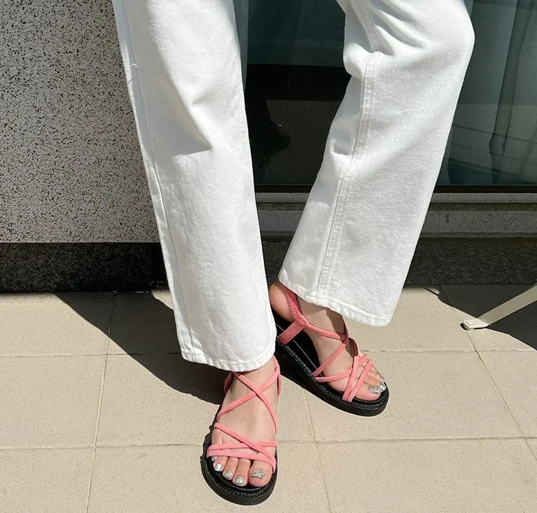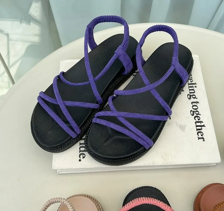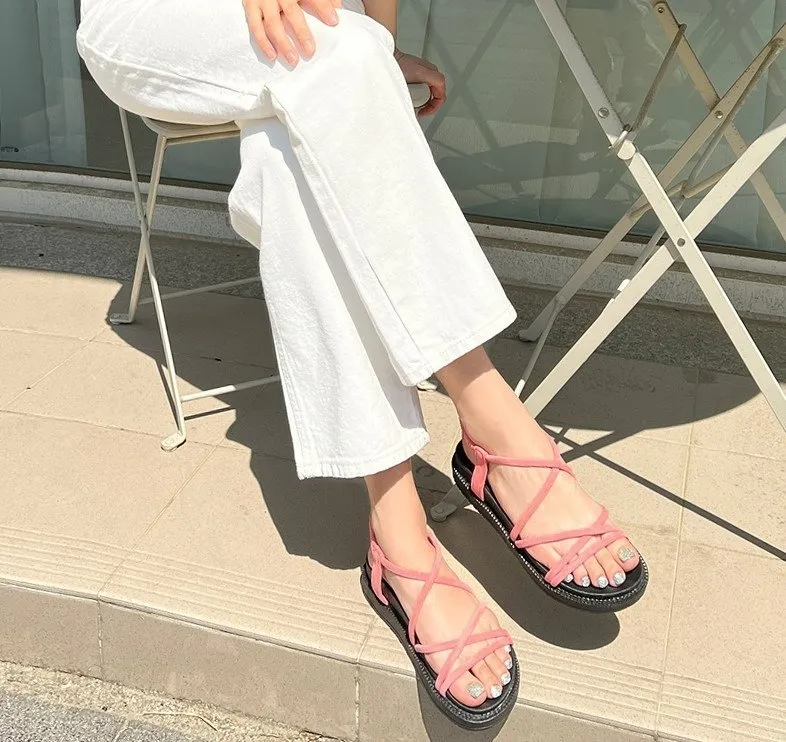 巨百搭~厚底羅馬線條厚底涼鞋 #百搭 #平價 #好穿 CP值超高 歐美風、日系風、韓妞風 這雙風格任妳穿 可鹹可甜 一雙優秀的涼鞋好看整個夏天! 厚底拉長比例看起來腿又更纖長 交叉羅馬設計不退流行款可穿好幾年 腳跟鬆緊設計穿脫超方便不咬腳 基本色&糖果色都好美我自己買了三雙 亮麗紫 經典棕 抹茶綠 奶茶杏 蜜桃粉 時尚黑 【尺寸】23~25 (有半號) 正常版型 挑選自己平常穿的尺寸即可特別說明:此商品為韓國店家設計&品管 / 委託大陸代工