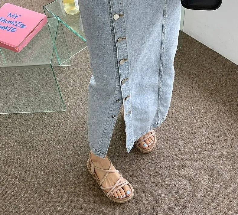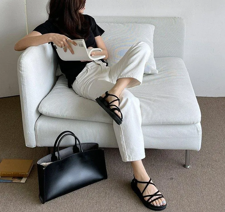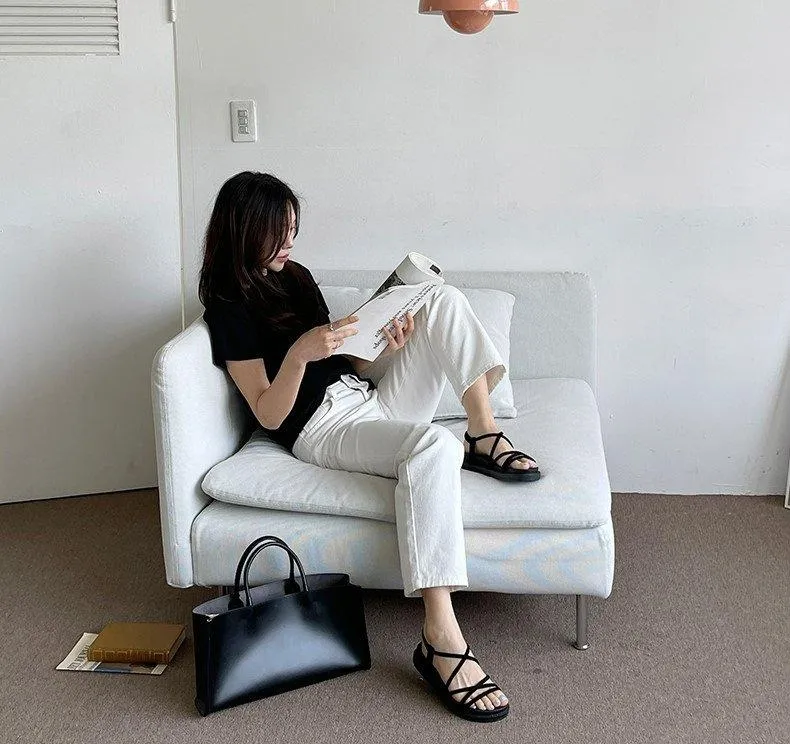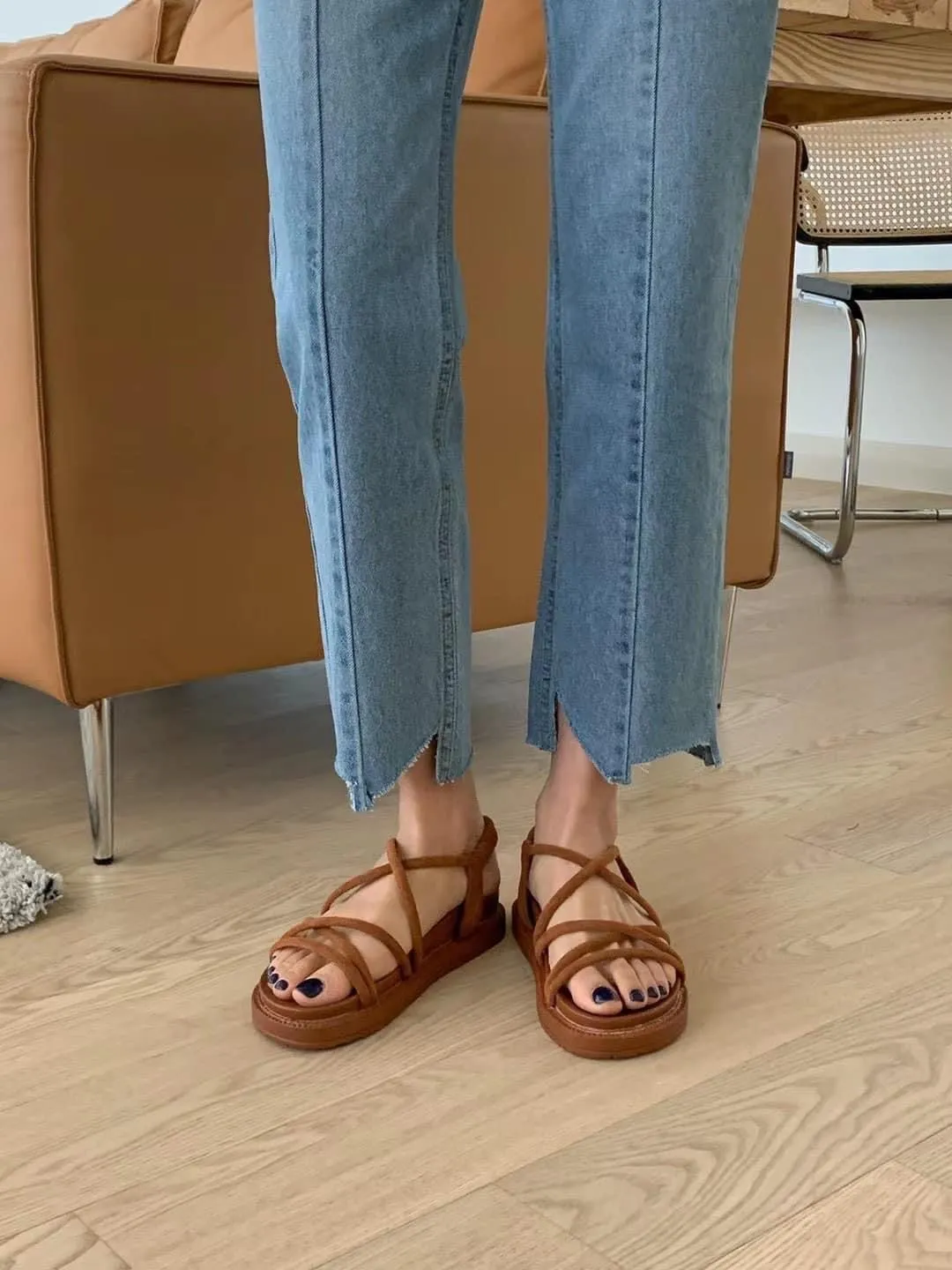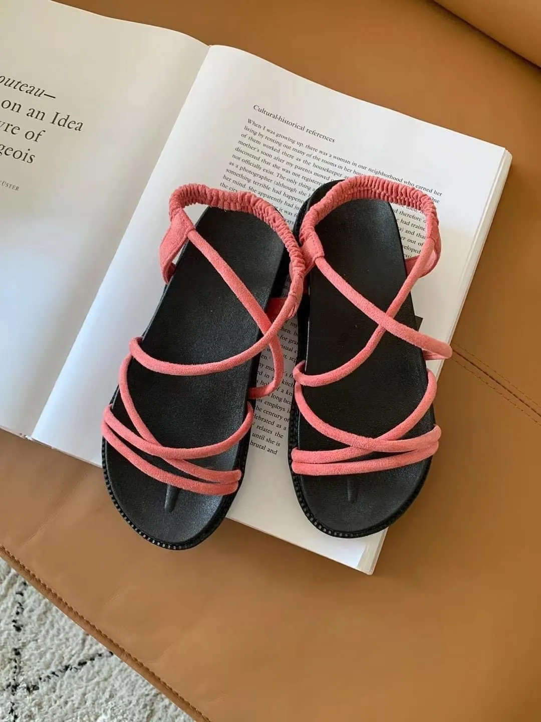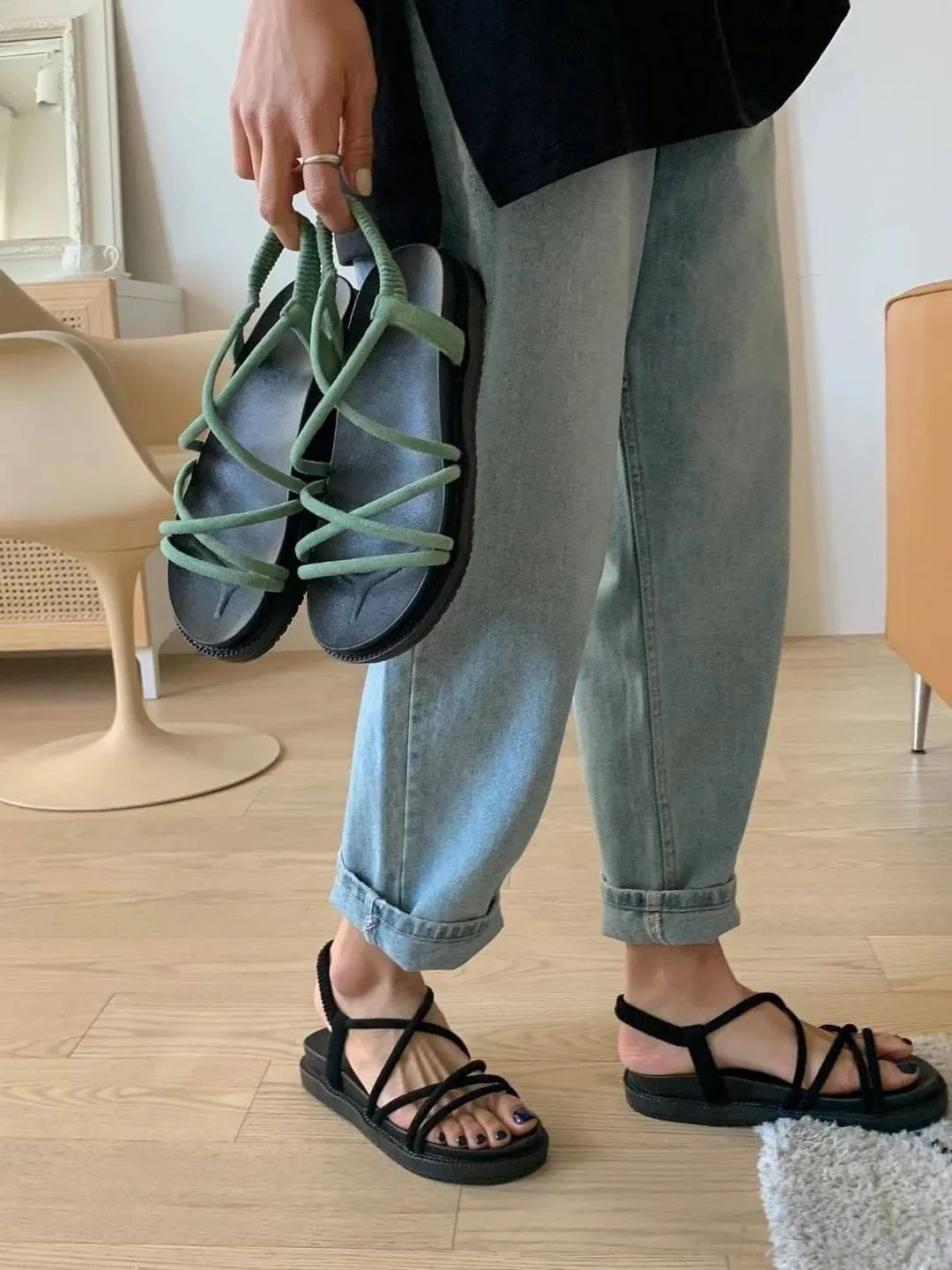 巨百搭~厚底羅馬線條厚底涼鞋 #百搭 #平價 #好穿 CP值超高 歐美風、日系風、韓妞風 這雙風格任妳穿 可鹹可甜 一雙優秀的涼鞋好看整個夏天! 厚底拉長比例看起來腿又更纖長 交叉羅馬設計不退流行款可穿好幾年 腳跟鬆緊設計穿脫超方便不咬腳 基本色&糖果色都好美我自己買了三雙 亮麗紫 經典棕 抹茶綠 奶茶杏 蜜桃粉 時尚黑 【尺寸】23~25 (有半號) 正常版型 挑選自己平常穿的尺寸即可特別說明:此商品為韓國店家設計&品管 / 委託大陸代工