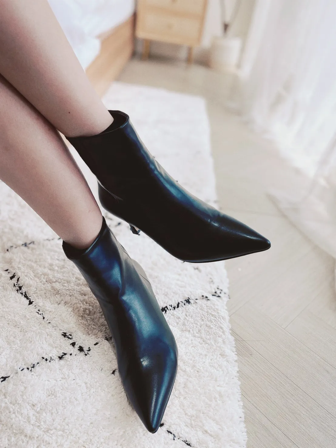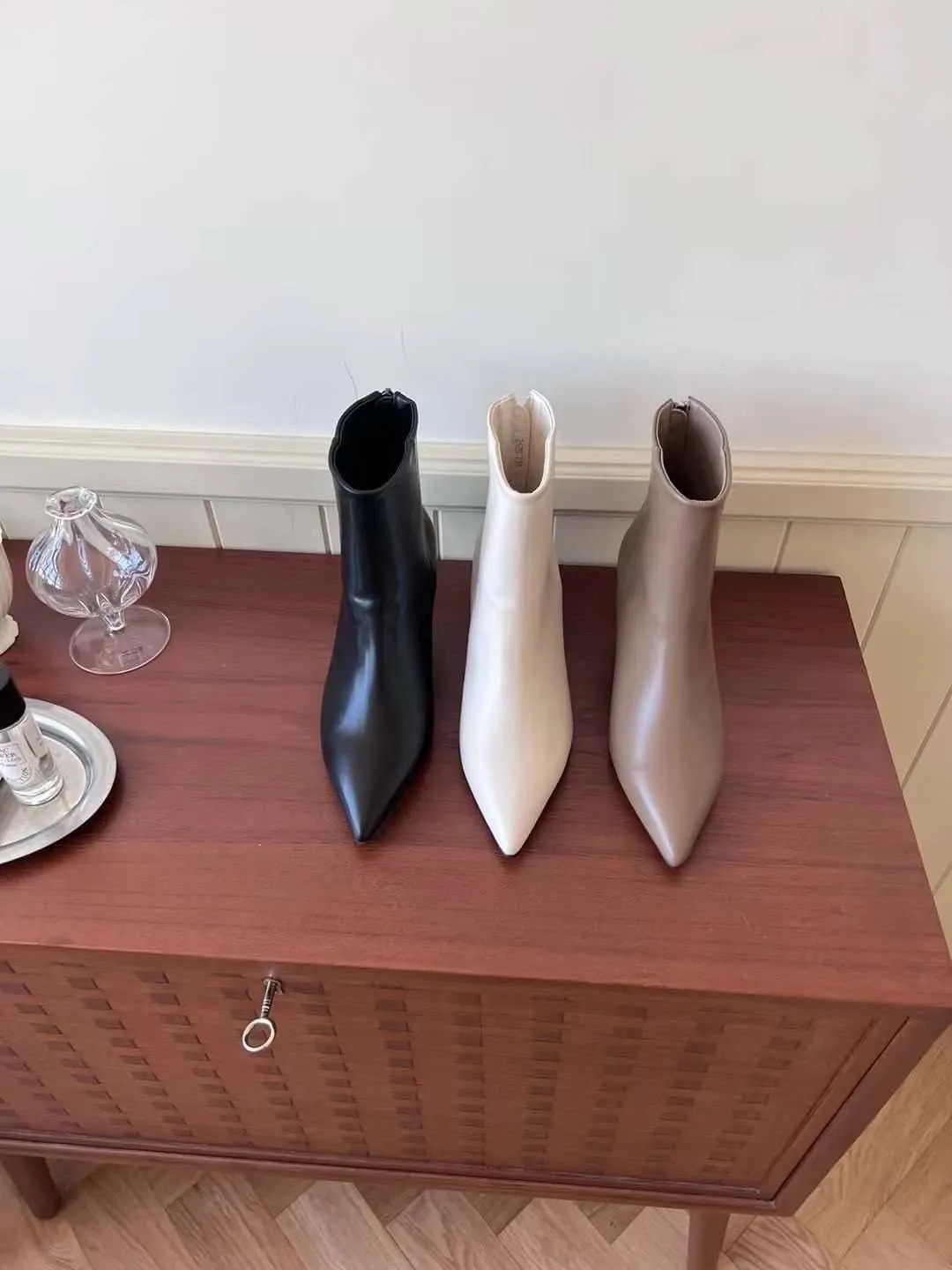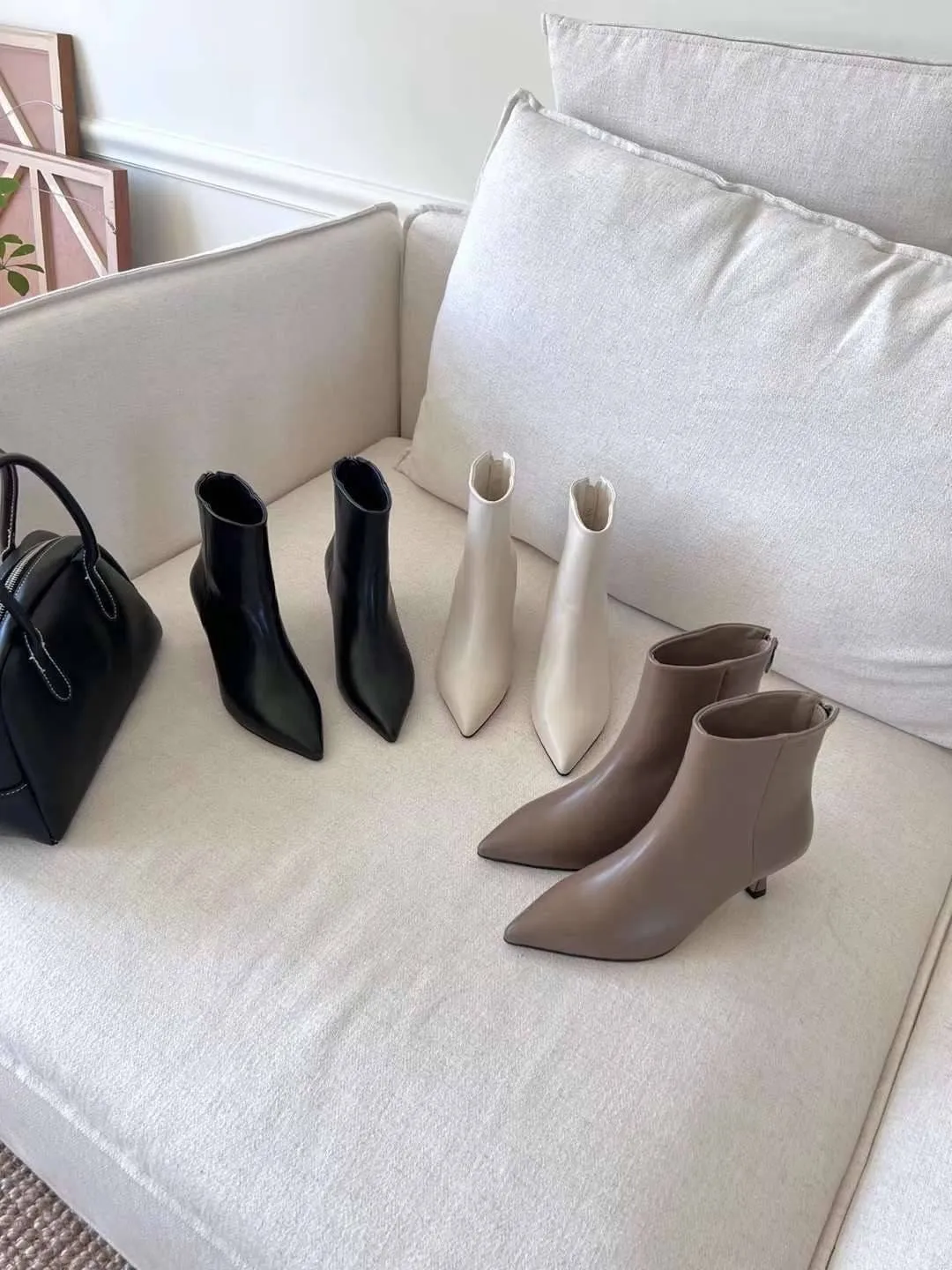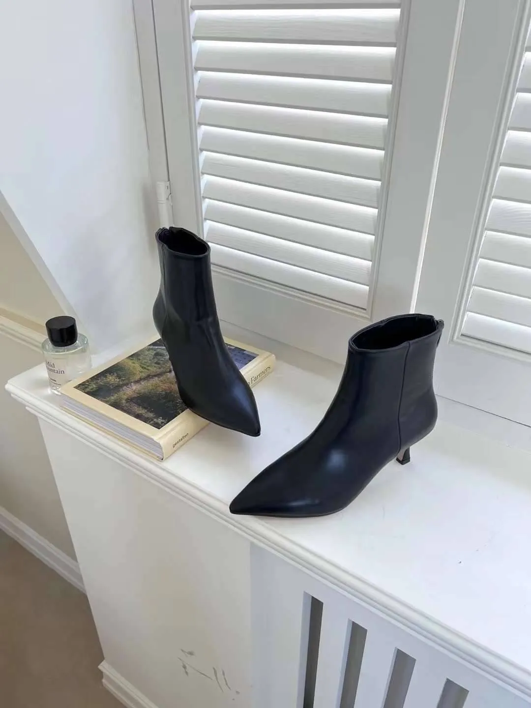 現貨最後一件售完不補★穿起來絕美 韓妞氣質小女人 尖頭皮革踝靴