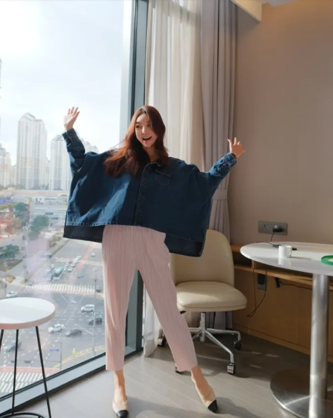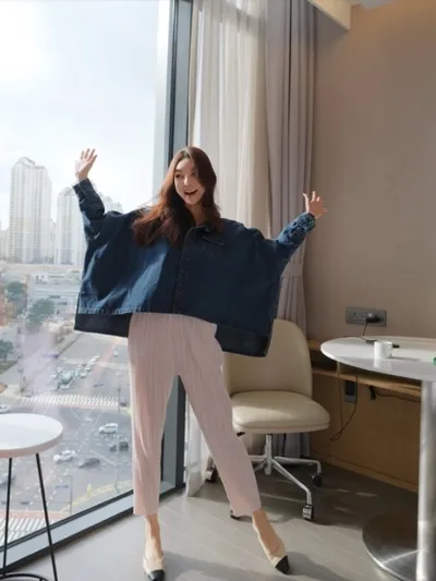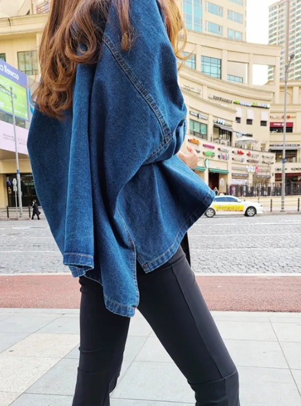 現貨最後一件售完不補❤穿起來美爆 可休閒可優雅的蝙蝠袖牛仔外套
